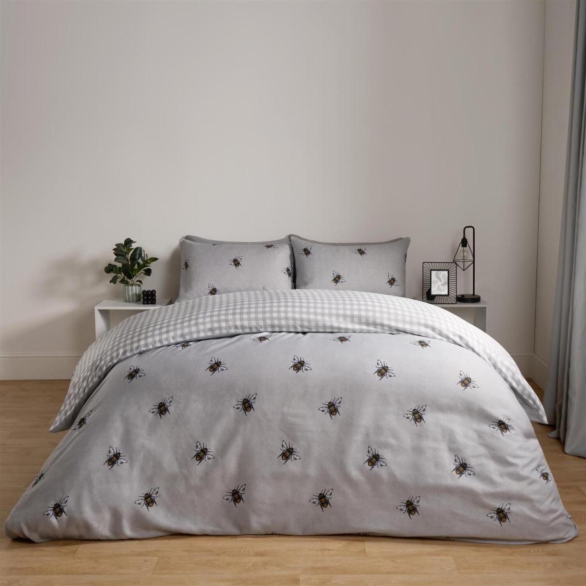 This bee reversible check duvet set combines charm and versatility to enhance your bedroom decor. This delightful duvet set features a whimsical bee print on one side, adding a touch of nature-inspired sweetness to your space. The reversible design showcases a classic check pattern on the other side, providing a timeless and coordinated look. Crafted with attention to both style and comfort, this set includes a duvet cover and matching pillowcase(s). The sage colour palette adds a soothing and sophisticated element to your bedding ensemble. Switch between the bee print and check pattern for a change of style or to suit your mood.