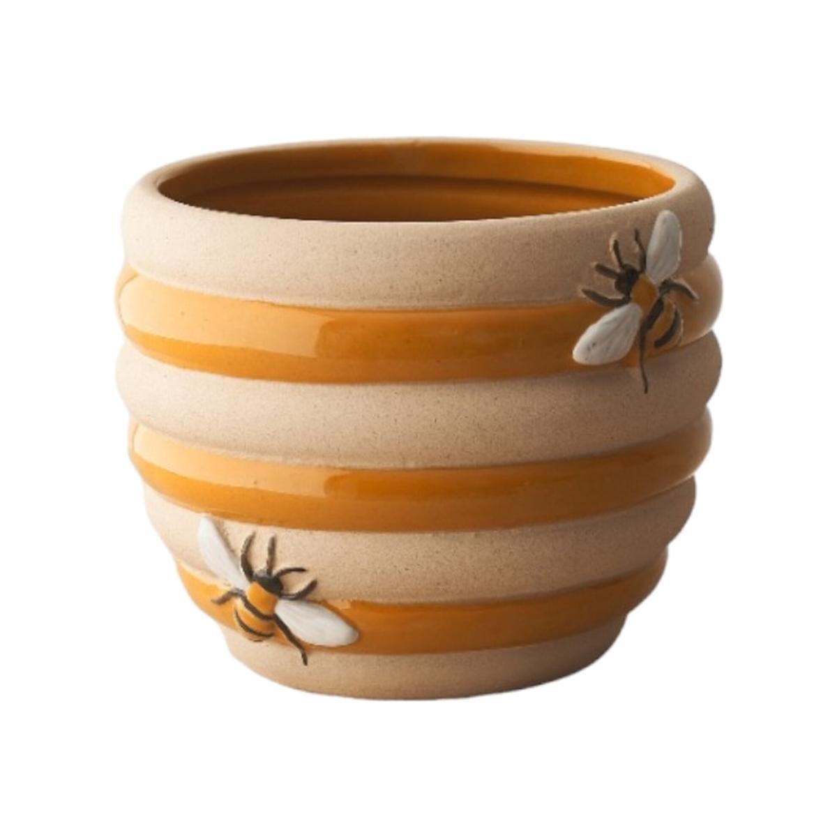 This beehive design pot features charming bee decals, perfect for adding a touch of nature to your indoor space. Bring the beauty of the outdoors inside with this stylish pot. This pot can also be used as a decorative piece in the home. Available in 3 sizes.