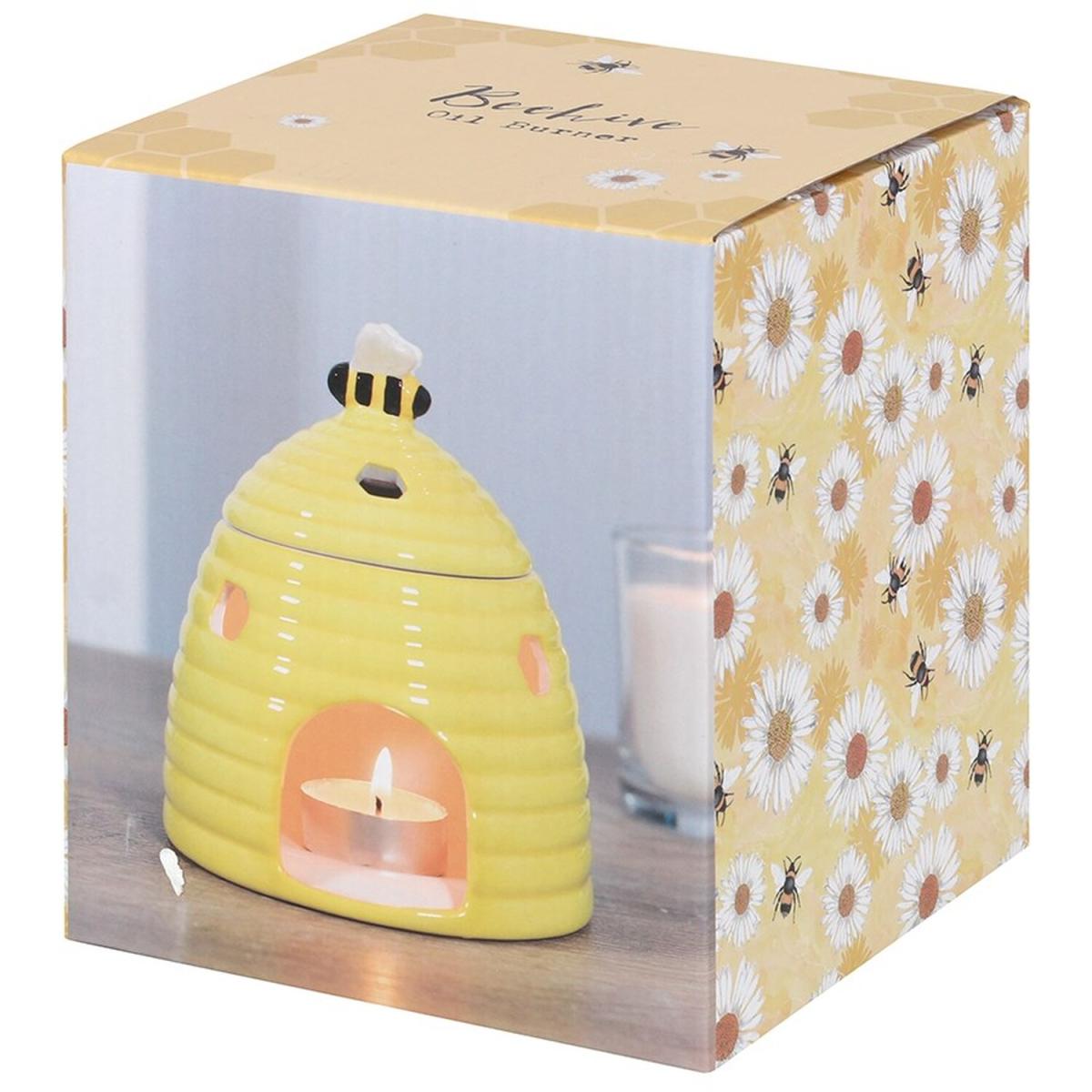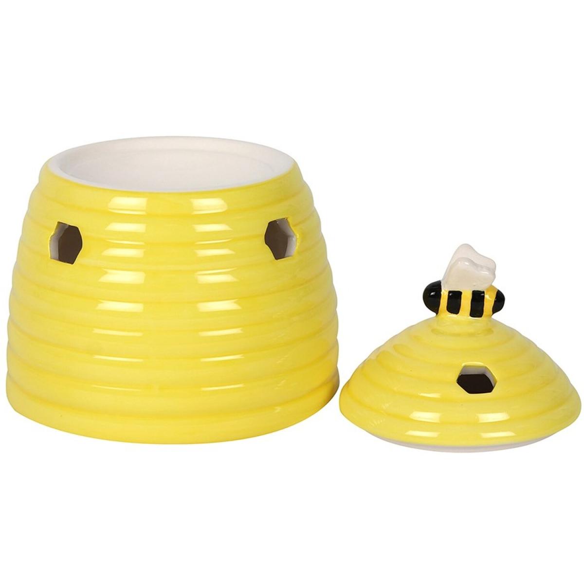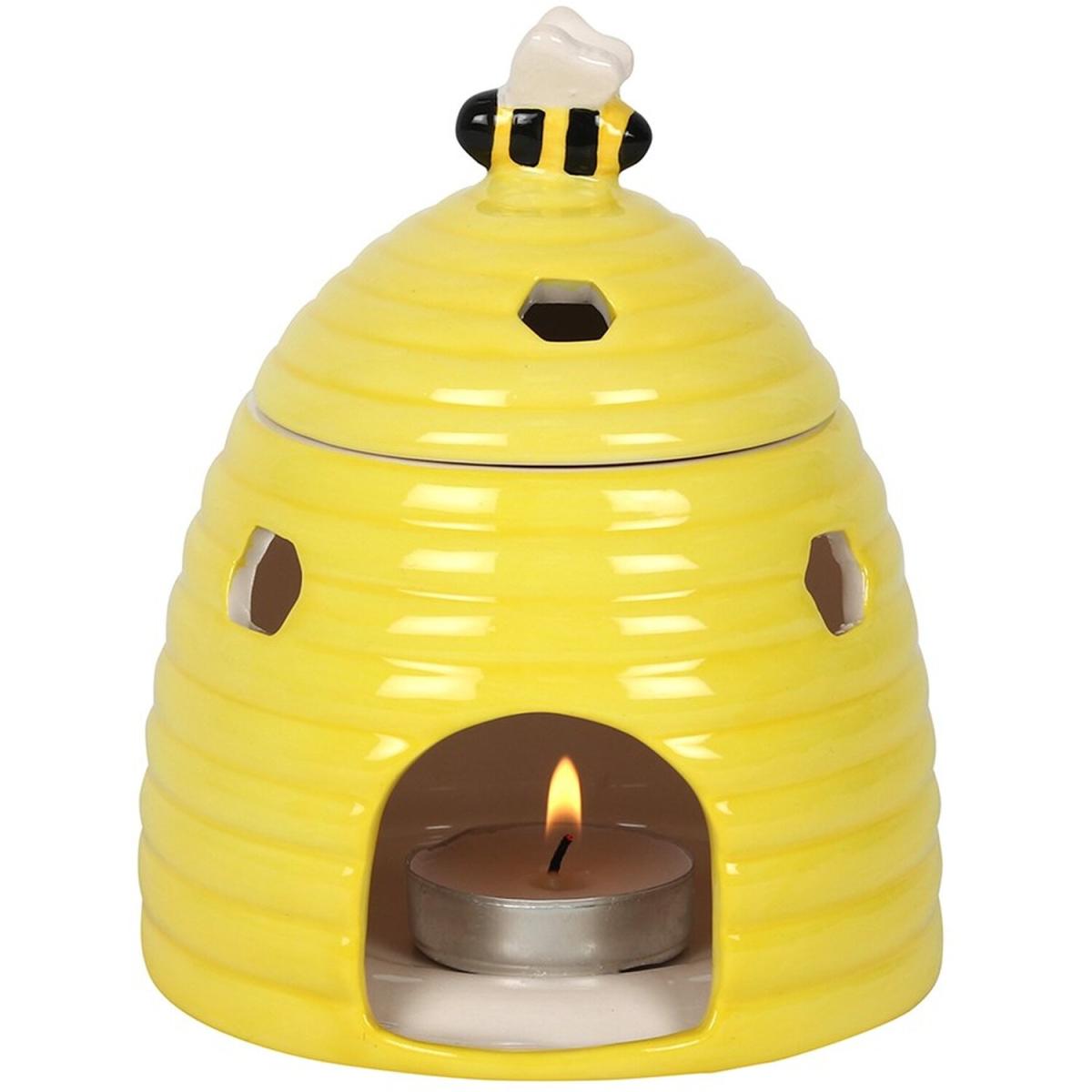 This ceramic oil burner and wax warmer come in the shape of an adorable yellow beehive with a sweet bee on the lid. Honeycomb-shaped cutouts finish off this unique style. Compatible with both fragrance oils and wax melts. Do not use more than one tealight and remove the lid when in use.