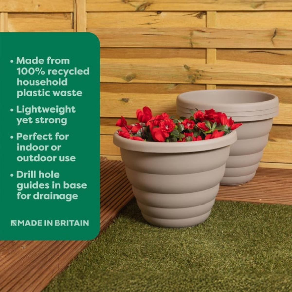 * Plastic plant pots * Durable and built to last * Lightweight * Frost resistant Designed for everyday gardening, this set of four Beehive round plant pots offers a practical and stylish solution for your planting needs. Crafted from recycled materials, they’re lightweight for easy repositioning and tough enough to resist cracking. Whether placed indoors or out, their frost-resistant build ensures reliable performance all year round, making them a smart choice for eco-conscious gardeners.