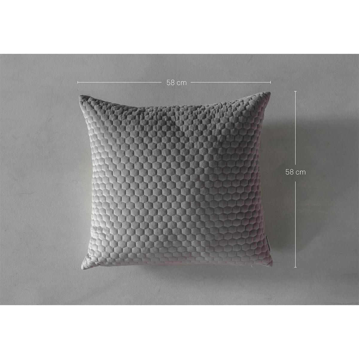 Softness and style go hand in hand with the Beehive cushion. It has a velvet cover of extraordinary softness and a delightful honeycomb texture with coordinated piping. The Silver shade completes the look, adding presence to this cushion which could beautifully feature a neutral sofa. Either on its own or combined with other cushions, the Beehive will add a subtle touch of colour and a sophisticated look to any interior. The Beehive is part of a range and is available in a variety of colours.