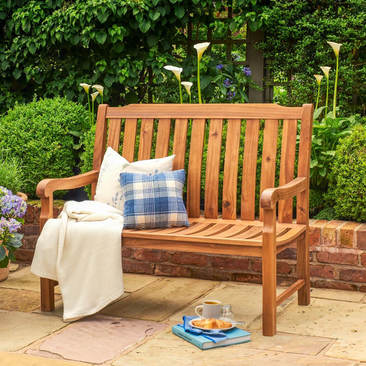 I love the Beeley small outdoor bench for its classic slatted design and versatile size, making it perfect for cosy garden corners or small patios. It works beautifully in traditional or cottage-style gardens but can also complement a modern setting when paired with cushions and throws in contemporary fabrics. Practical styling tips include layering it with outdoor cushions to add comfort and colour, or pairing it with potted plants and lanterns for a relaxed, inviting vibe. This bench is a great addition to outdoor spaces where durability meets simplicity, allowing it to blend seamlessly into various garden aesthetics while providing a functional and charming seating spot.