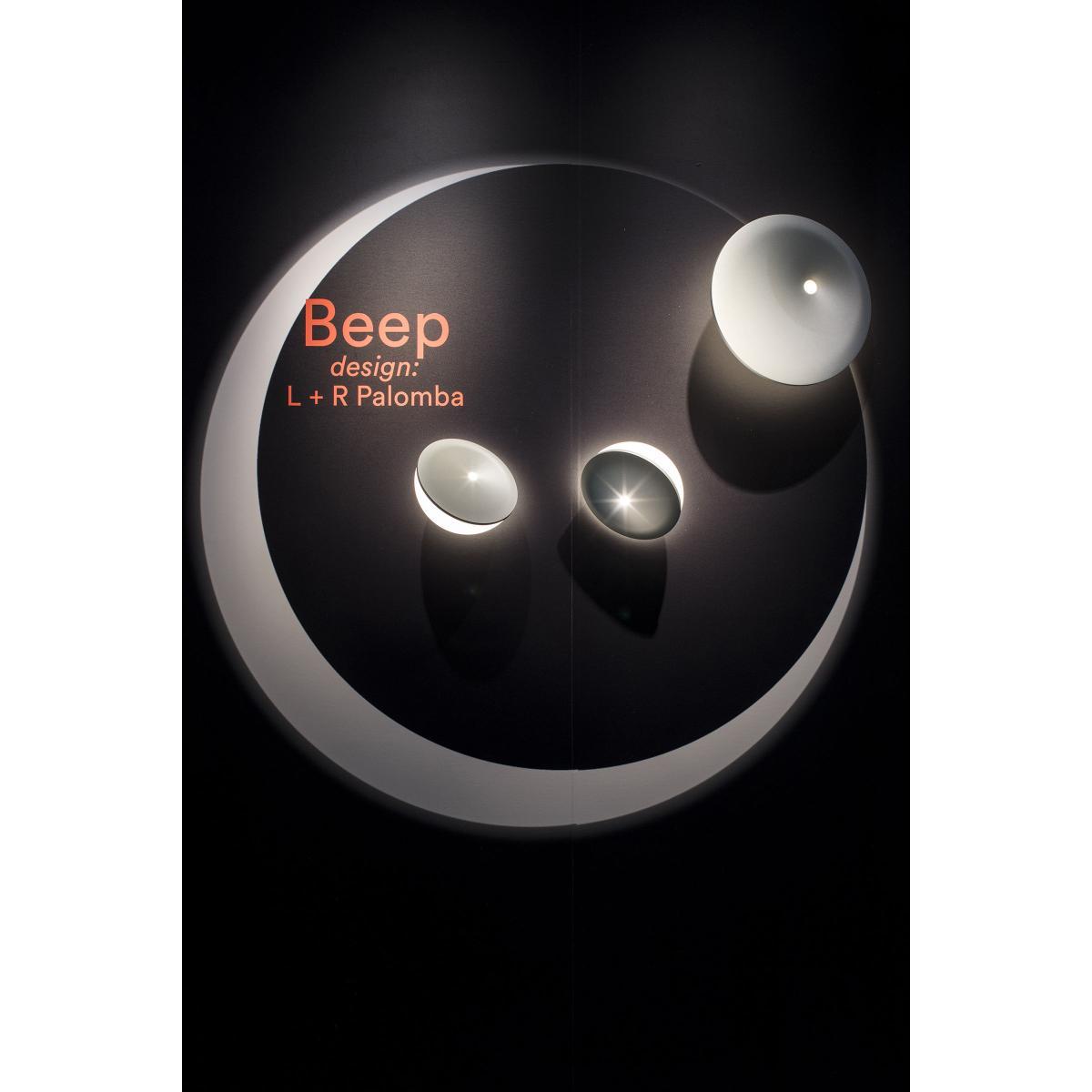 Created by Italian designers Ludovica + Roberto Palomba, Beep rests on the wall with all the lightness of a butterfly. Beep dialogues with its environment to give life to asymmetrical, unique light decors. Its strength lies in its great luminous and visual comfort, with enveloping but never dazzling lighting. Orientable thanks to its 360° swivel base, the light beam is reflected on the wall and ceiling. The 360° swivel base lets you orient the direction and amount of light as desired. The semi-sphere in translucent opaline white PMMA is covered with a diffuser disc in opaque anthracite ABS. The lamp’s spherical body appears dematerialised by the light, and the diffuser disc seems suspended in the air. The light emanating from the body diffuses by reflection on the wall. The opaque diffuser disc masks the light except for a small decorative opening in an offset position which creates a point of light. This small opening creates an effect of dynamism and depth. Ludovica and Roberto Palomba explain: "A lamp capable of establishing a dialogue with its environment. Beep is not just an object that illuminates, but which combines wall, ceiling and floor to create asymmetrical, unique decoration. ".