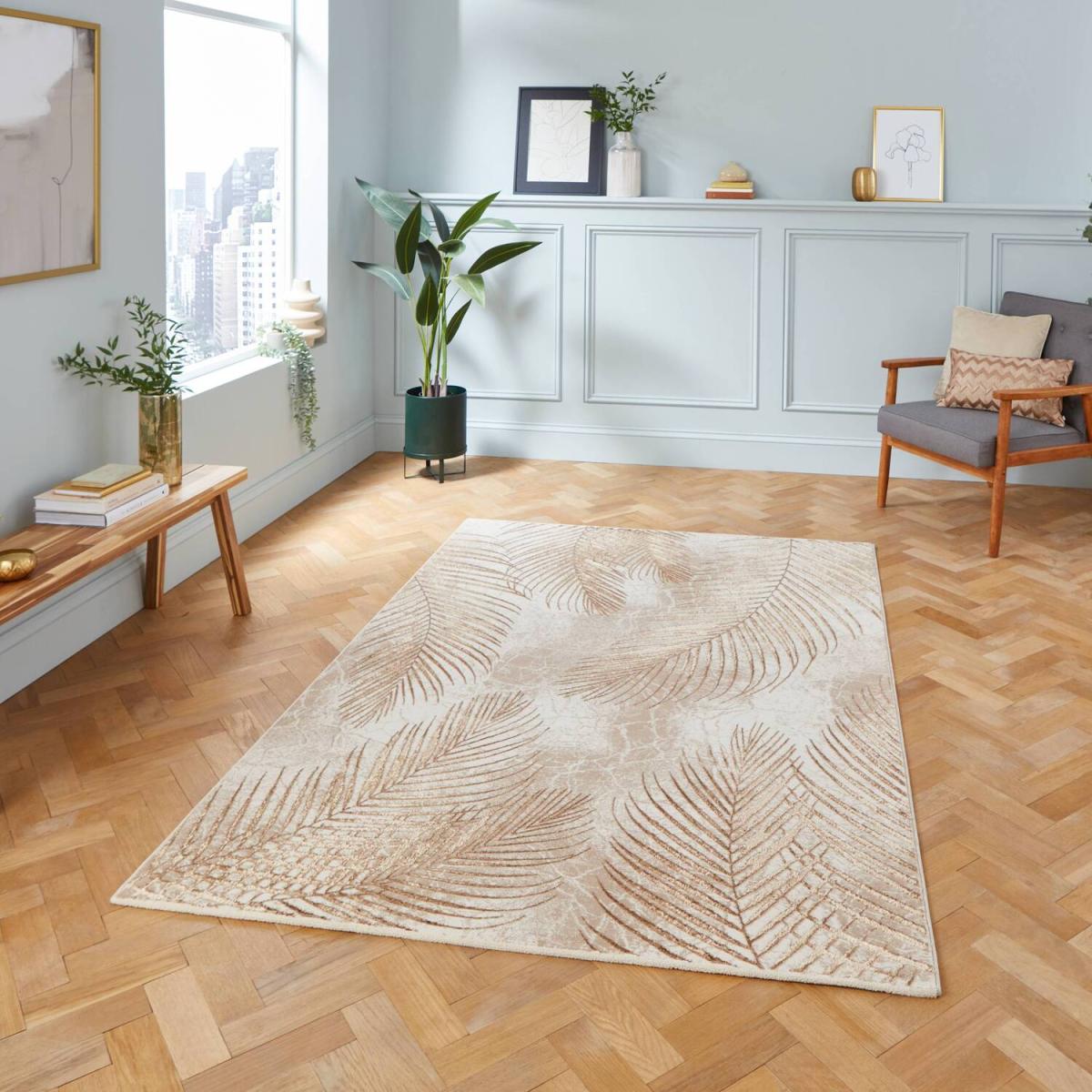 This beige and bronze ribbed floral rug is a versatile piece that adds a subtle touch of texture and sophistication to a range of interiors. I love how the neutral tones work well in both modern and traditional spaces, grounding a room with warmth without overpowering the existing colour palette. It’s particularly effective in living rooms or bedrooms, where the soft pattern can complement natural fibres and wooden furniture. For styling tips, consider pairing it with lighter, minimalist furnishings to highlight the delicate ribbing or layer it with throws and cushions in complementary bronze or beige shades for a cohesive look. Its practical size of 170cm makes it a great choice for defining a seating area or creating a cozy nook in an open-plan plan.