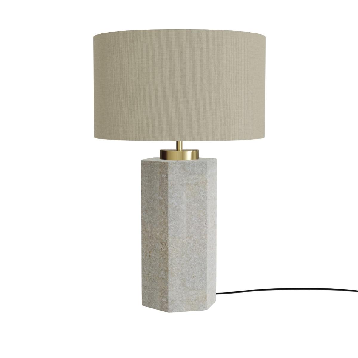Add a stylish touch to your home with this striking table lamp. It features a thick concrete base with six sides and brass detailing, making it an eye-catching piece. Its neutral design softens its contemporary look, making it versatile and easy to style. Save the hassle and pair with an E27 bulb at checkout.