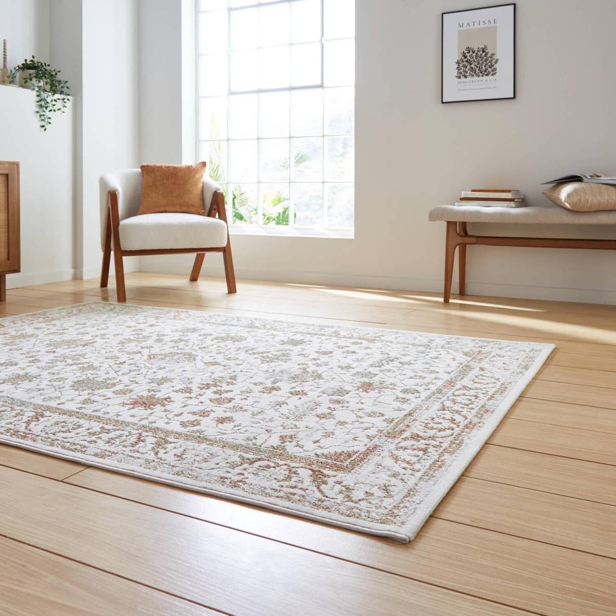 I love this rug because of its neutral beige tone with a subtle border that can effortlessly tie together a variety of interior styles. It works particularly well in traditional, transitional, or even bohemian settings where it can add warmth without overpowering the space. For practical styling, consider layering it over a larger, solid-coloured rug for added depth or placing it beneath a mid-century or vintage-inspired furniture set. Its size is ideal for defining a cosy seating area or sitting pretty in a front hallway, and it’s versatile enough to complement neutral palettes or be a subtle contrast in more colourful rooms. Just keep in mind that its pattern is understated enough to maintain a relaxed, clutter-free look, making it a reliable choice for living rooms and bedrooms alike.