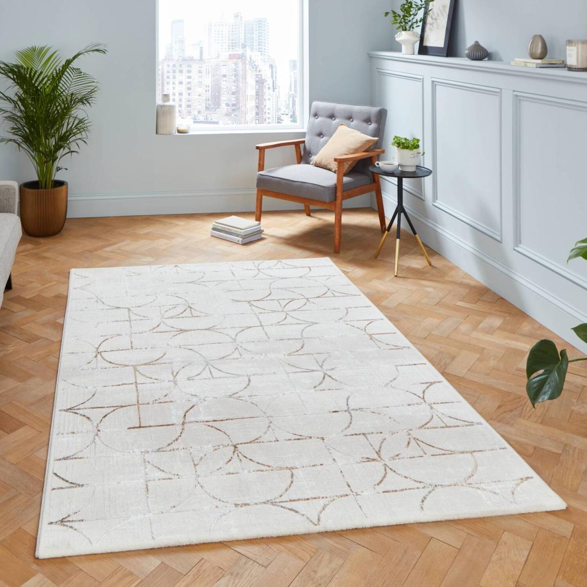I really like this beige and silver rug because of its versatile colour palette and contemporary pattern, making it a great choice for modern interiors. It works particularly well in neutral-toned living rooms or bedrooms where it can add subtle elegance without overpowering the space. For styling tips, pair it with similar toned furnishings, or add a few metallic accents to highlight the silver detailing. It's ideal for small to medium spaces, and placing it underneath a coffee table or at the foot of a bed can help anchor the area while adding a layer of texture. Keep the surrounding décor minimal to really allow the pattern and colours to stand out.