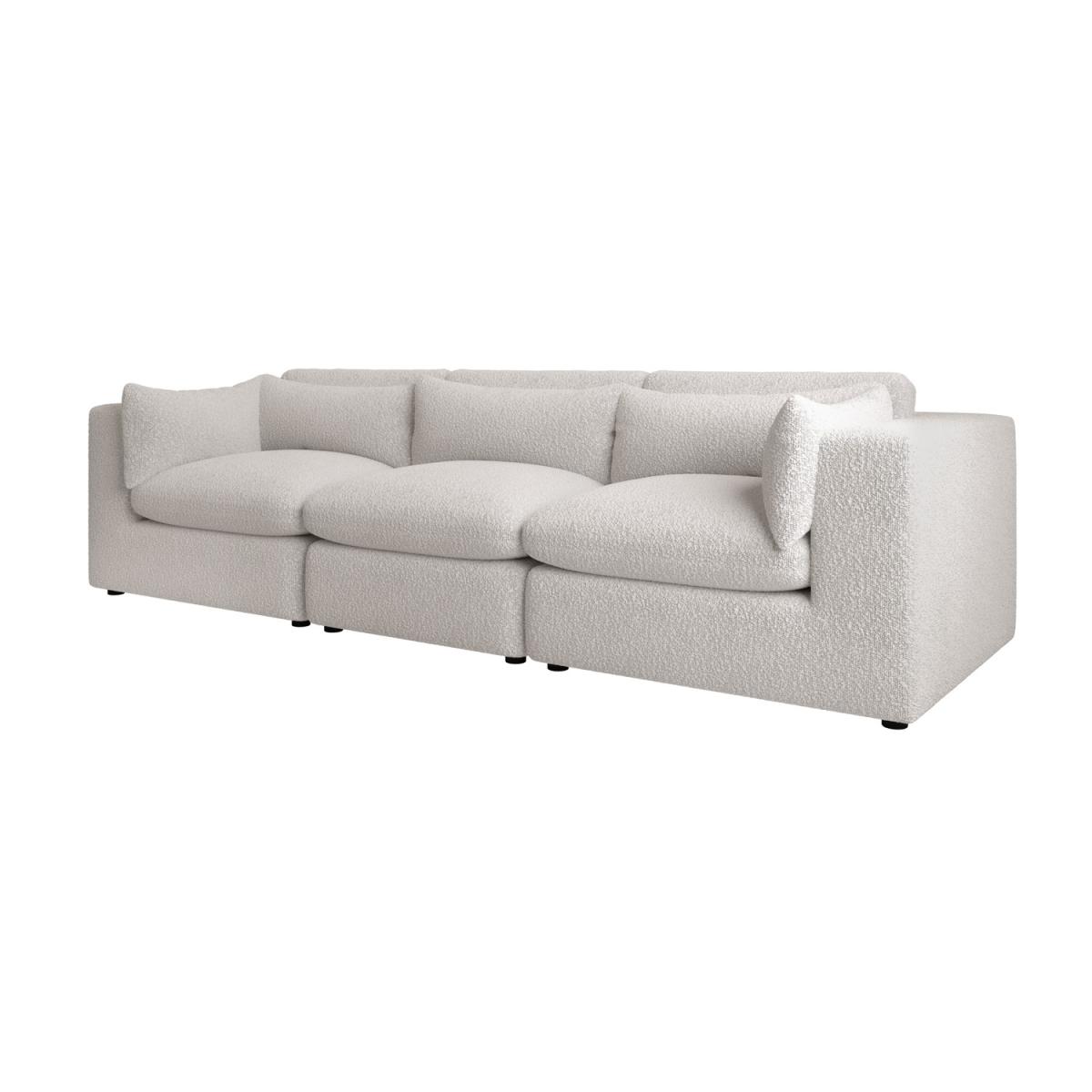All about me Add a touch of modern luxury to any living room with the Hudson sofa, with space to comfortably seat up to four people. Plump foam-filled seat and back cushions provide maximum comfort, and the covers are removable for easy washing. It's easy to assemble too; simply slot the pieces together. Need to know Dimensions:W256 x D97 x H72 cm Seats: 4 people Maximum supported weight: 100 kg per seat Colour: Beige Finish: Upholstered Material:Boucle fabric Assembly required: Yes - just slot the pieces together Packaging dimensions: Box 1- W95 x D99 x H67 cm, Box 2- W95 x D99 x H67 cm,Box 3- W67 x D99 x H72 cm