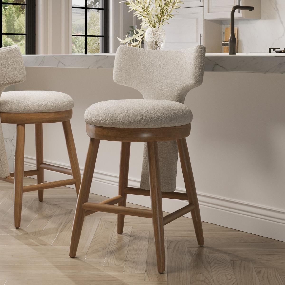 The backrest and padded seat ensure ergonomic support, offering exceptional comfort whether you're enjoying a meal or chatting with friends. The beautifully crafted oak legs feature natural wood grain patterns, adding warmth and a touch of timeless sophistication to your kitchen. Built with a solid oak wood frame, these stools offer lasting strength and stability, perfect for everyday use. The cushioned seat and backrest are upholstered in premium beige boucle fabric, providing a soft, inviting feel and a modern yet versatile aesthetic. An integrated wooden footrest enhances comfort, making it easier to relax during meals or gatherings. With their natural oak finish and beige tones, these stools effortlessly fit both modern and minimalist interiors. Designed to fit standard kitchen counters, these stools are ideal for casual dining or entertaining. A versatile choice for those with limited space, the single kitchen counter stool completes your kitchen seating setup with a modern, minimalist design that fits any home decor. Elevate your kitchen with the Nyla Kitchen Stools, featuring solid oak wood legs, a padded backrest, and soft beige boucle fabric upholstery for a sophisticated and welcoming appearance. The backrest and padded seat ensure maximum comfort, while the sturdy construction and supportive footrest add to their practicality. The oak legs highlights natural wood grain patterns, and the boucle fabric adds a premium, tactile finish. With a strong natural wood frame, supportive footrest, and premium materials, they’re perfect for everyday use in busy kitchens or dining areas. Designed with the ideal height for standard kitchen counters, they combine practicality with aesthetic charm, making them a smart choice for all kitchens. The stool is sold individually, making it ideal for smaller spaces or single seating needs. It’s perfect for adding style and comfort to your kitchen without taking up extra space. Number of Stools: 1 Dimensions: W46 x D51 x H91 cm Weight: 8.36 kg Max supported weight: 150 kg Colour: Beige Finish: Upholstered with solid oak legs Material: Solid oak, Boucle Assembly required: No Packed dimensions: W49 x D51.5 x H100 cm For domestic use only. Domestically UKFR certified.