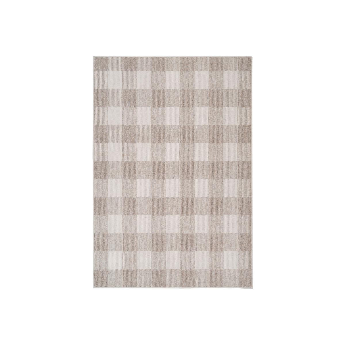 Beige Check Looped Pile Area Rug - Stone / 230cm