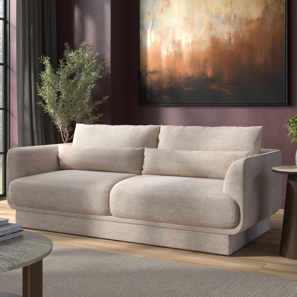 Its sleek, low-profile style and fully upholstered base that sits flush to the floor adds a clean, contemporary finish to your space. Upholstered in soft beige chenille, this sofa delivers comfort and style with a textured look that suits any modern interior. Perfect for family living rooms, cosy lounges, or entertaining guests in style. With removable and reversible back and waist cushions, making it easy to flip, refresh, or clean for lasting comfort and convenience. Includes two large scatter cushions for extra comfort and the finished look. The sturdy construction ensures everyday durability, making it a practical investment for your living space. Elevate your lounge, living room, or snug with the Ramses 3-Seater Sofa — where contemporary style meets everyday comfort. Upholstered in soft and neutral beige chenille, it brings a warm, inviting feel to any space. Generously sized to seat up to three people, it features plush scatter cushions and gently curved arms for enhanced comfort and support. A sleek, low-profile silhouette and fully upholstered base create a clean, modern look that sits flush to the floor. Plus, it arrives fully assembled so you can enjoy it right away.