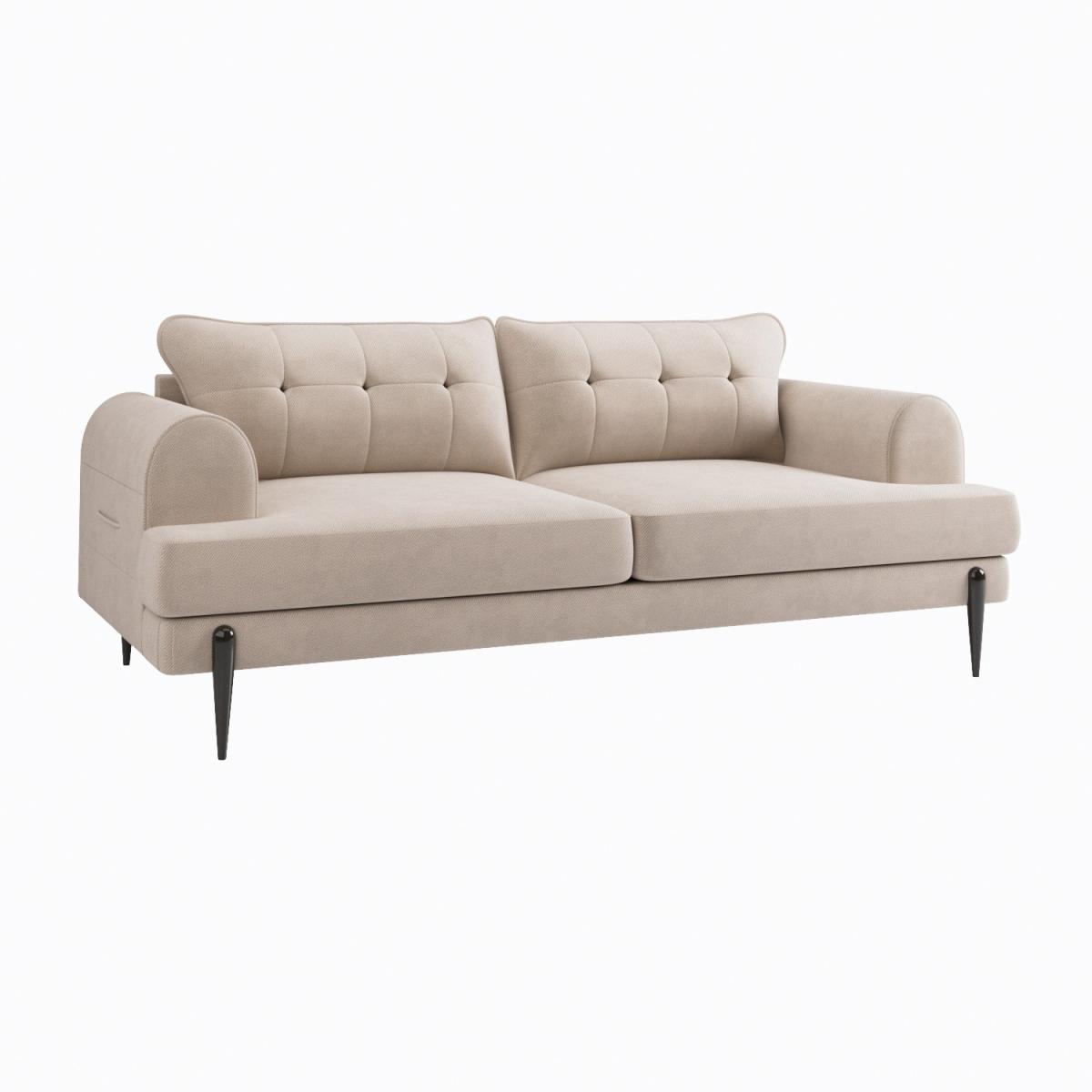 All about me. The Rosie sofa creates a statement in any living room with a quilted back detail and neutral woven upholstery that pairs beautifully with any interior style. Pair with the matching Rosie furniture for the perfect look. Need to know. Dimensions. W210 x D92 x H85 cm Packaging dimensions. W212 x D94 x H57 cm Weight. 49 kg Maximum supported weight. 110 kg per seat Seats. 3 people Colour. Beige black legs Finish. Upholstered Material. Woven fabric metal legs Filling. Foam Frame. Strong plywood and eucalyptus wood Assembly required. Yes - just attach the legs.