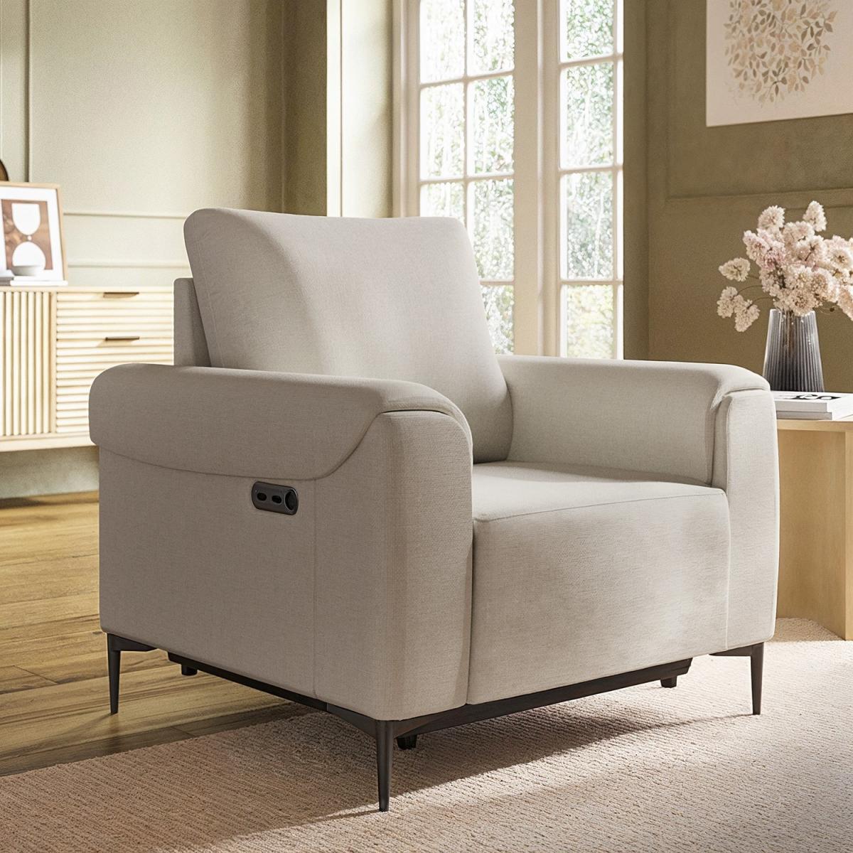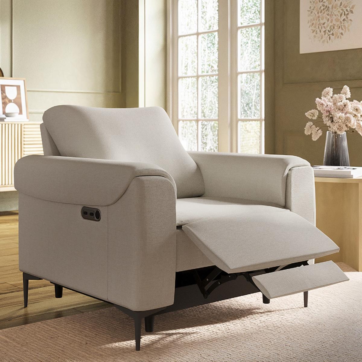 Easily find your perfect feeding or relaxation position with a gentle reclining mechanism, ideal for soothing your little one during late-night sessions. Keep your devices powered up without leaving your seat, making those long nursing sessions more convenient. Wrapped in soft, high-quality fabric with a supportive silhouette, this chair blends comfort with a sleek, stylish look that complements any nursery décor. Generously padded cushions and ergonomic design provide excellent back and arm support for mum and baby. Perfect for smaller spaces without compromising on comfort or features. Arriving fully assembled, you can start enjoying your chair right away. Create the perfect spot for feeding and bonding with this thoughtfully designed nursing chair. Whether you’re nursing, reading, or simply unwinding, its smooth power-reclining function and integrated USB & USB-C charging ports make life easier for busy parents. With its ergonomic design and supportive cushioning, this chair provides exceptional comfort during long nursing sessions. At the touch of a button, you can recline effortlessly—just press, hold, and release once you’ve found your ideal position. When you’re ready to return upright, press and hold the second button, and the footrest tucks away for a sleek, space-saving finish. Dimensions:W102 x D92 x H98 cm Packaging dimensions:W104 x D88 x H65 cm Weight: 45.4 kg Max supported weight: 110 kg Colour: Beige Finish: Upholstered Material: Fabric, wood, metal Filling: Foam Weight Capacity: 110kg Assembly required: No