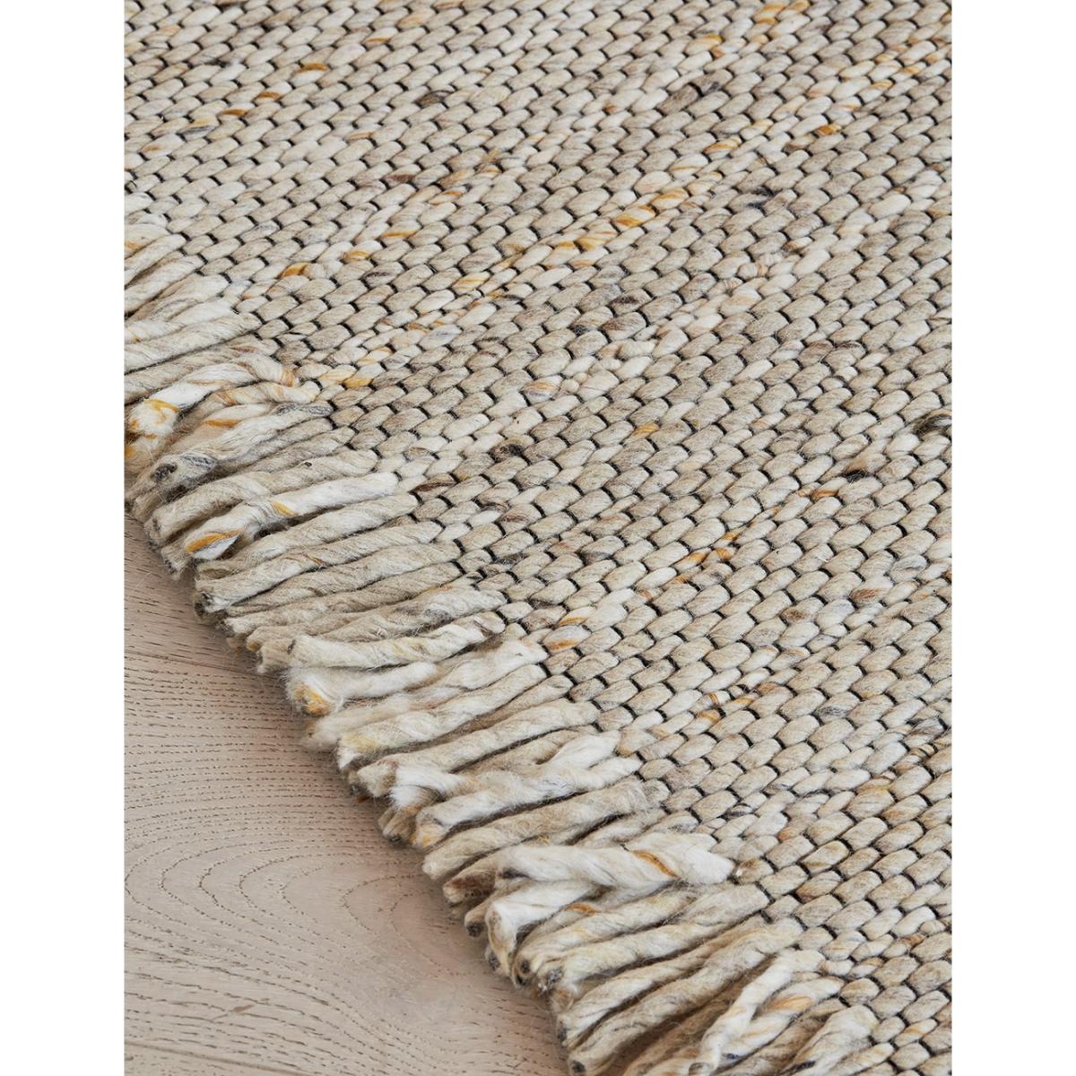 This gorgeous textured rug features a woven pattern and soft tassels. The large size and thick pile are perfect for adding warmth to a reception room or bedroom. The rug is also available in grey and a matching cushion is also available.