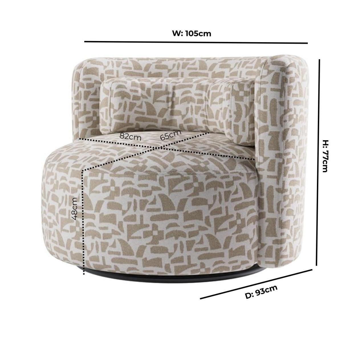 Upholstered in a unique beige jacquard fabric, it adds texture, depth, and a touch of elegance, instantly becoming a focal point in any room. Its gently curved silhouette enhances both comfort and visual appeal, offering a cosy, contemporary twist on classic seating. Enjoy full flexibility and easy movement with a 360-degree rotating seat. With a removable cushion cover and a reversible waist cushion for effortless cleaning and maintenance. Arrives fully assembled, so you can start enjoying it straight away. Crafted with a sturdy frame and high-quality materials, this love seat is designed for long-lasting durability. Make a bold style statement with the Elara Curved Swivel Love Seat, a perfect blend of comfort and character. Upholstered in a beige jacquard patterned fabric, its striking design and elegant curved silhouette bring a contemporary look to any space. Whether used as a snuggle chair or accent piece, this love seat adds both texture and personality to your room. Designed with practicality in mind, it features a removable cushion cover for easy care and a reversible waist cushion for flexible styling. Plus, it arrives fully assembled so that you can enjoy its comfort and charm right away.