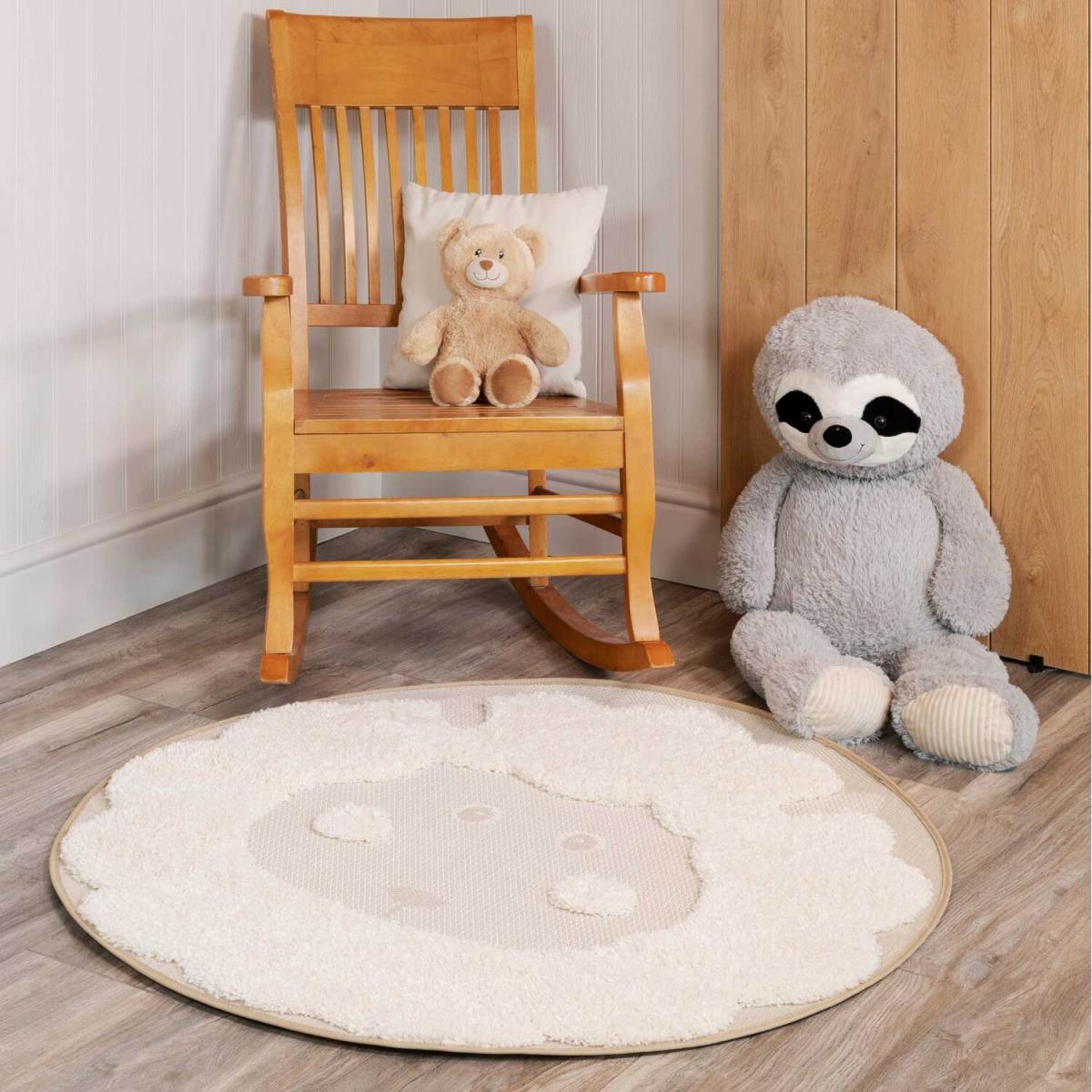 Beige Round Lamb Bedroom Nursery Room Mat - Beige