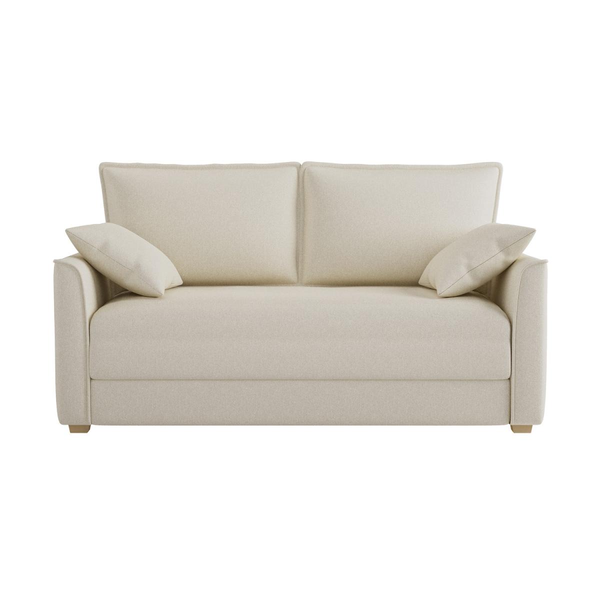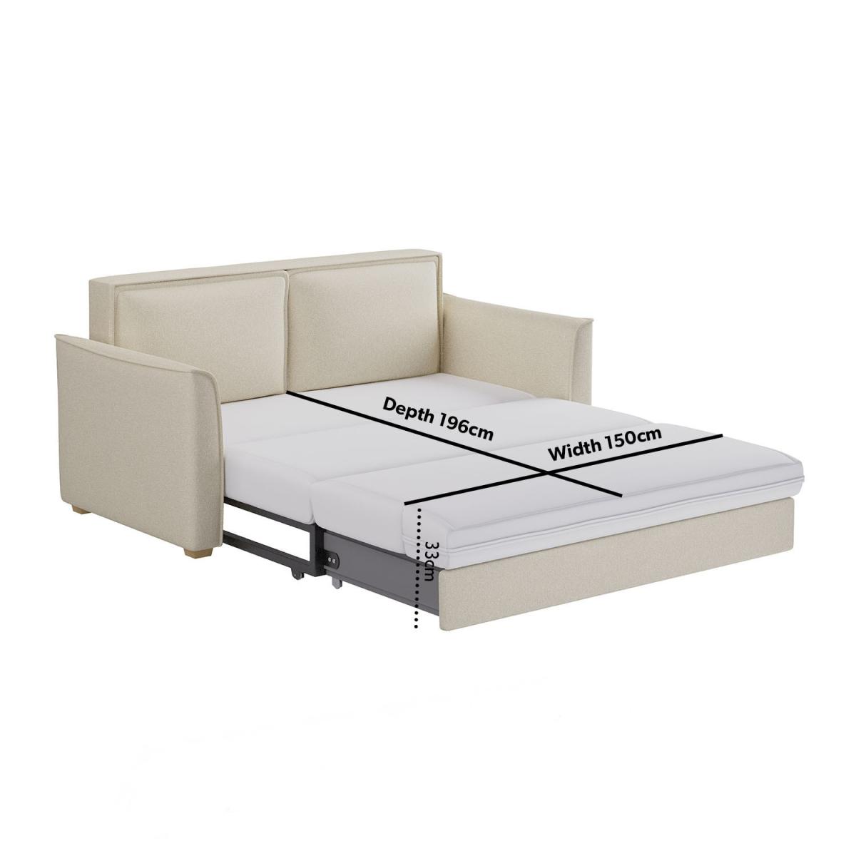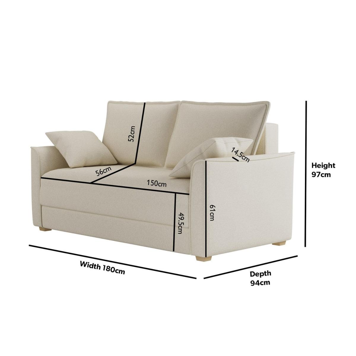 Foam filled Quickly transforms from a cosy sofa to a spacious bed, ideal for overnight guests and small spaces. The clever double fold-out design creates a large bed for you to stretch out and relax in. The soft foam filling provides cosy, supportive seating for a great night's sleep. The clever concealed storage is perfect for keeping bedding and essentials tucked away. Ideal for small apartments, guest rooms, or multipurpose spaces, offering seating and sleeping in one smart design. Easy to remove and clean cushion covers for hassle-free maintenance. Enhance your living space with the Hunter 2-Seater Pull-Out Sofa Bed. Wrapped in soft, durable, water-repellent fabric made from recycled materials, it not only offers elegance and comfort but also a more eco-friendly choice for your home. The neutral beige colour adds a cosy touch, while the foam-filled cushions provide a plush seating experience. Its easy pull-out design transforms it into a large bed in seconds, making it perfect for overnight guests or small spaces. Built in storage is the perfect place for bedding when its time to switch back from bed to sofa. Two matching scatter cushions are included to complete the look, ensuring that the Hunter Sofa Bed will look great in any space.