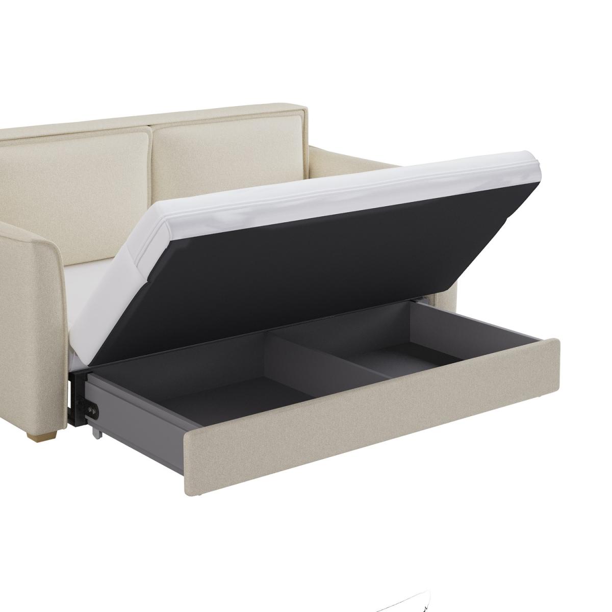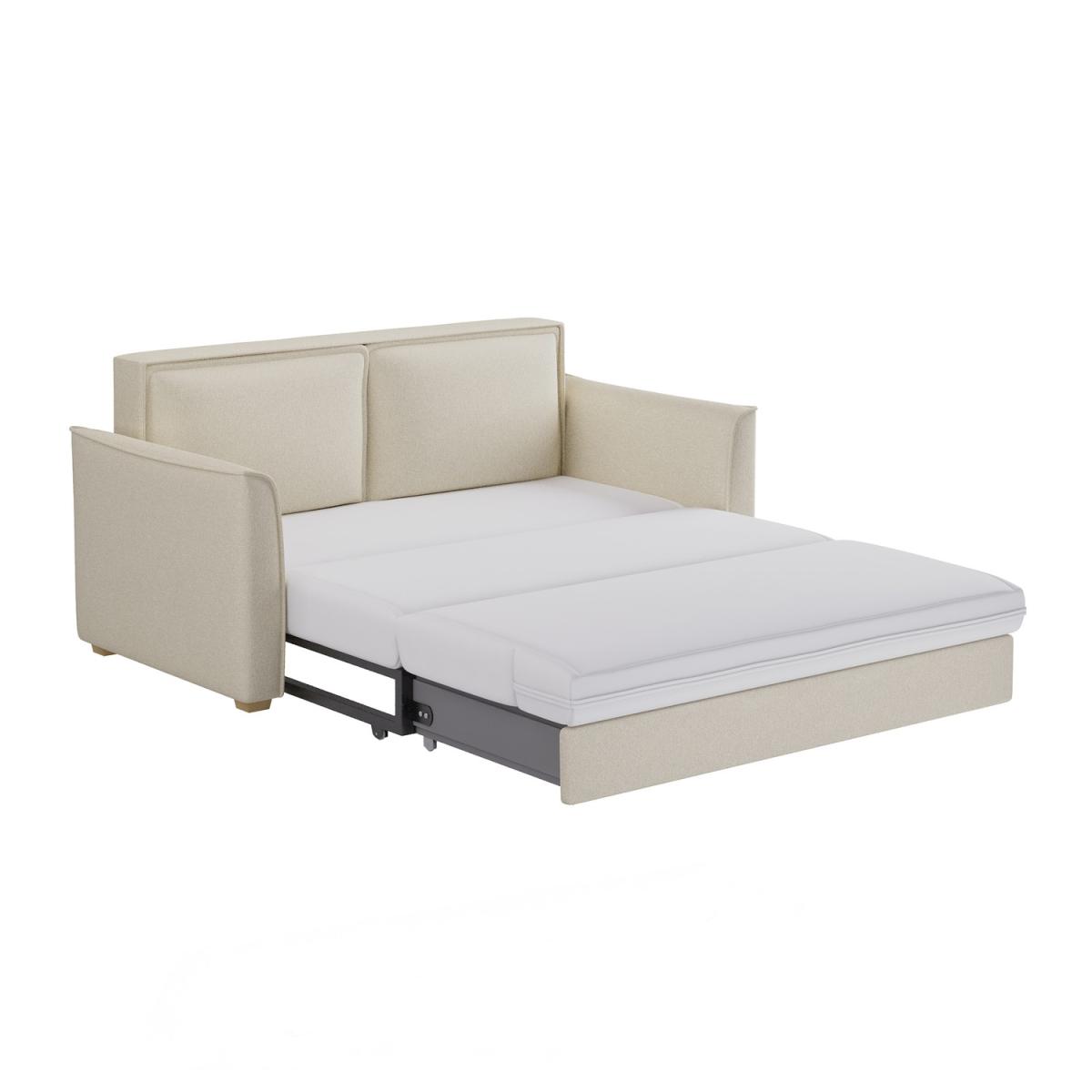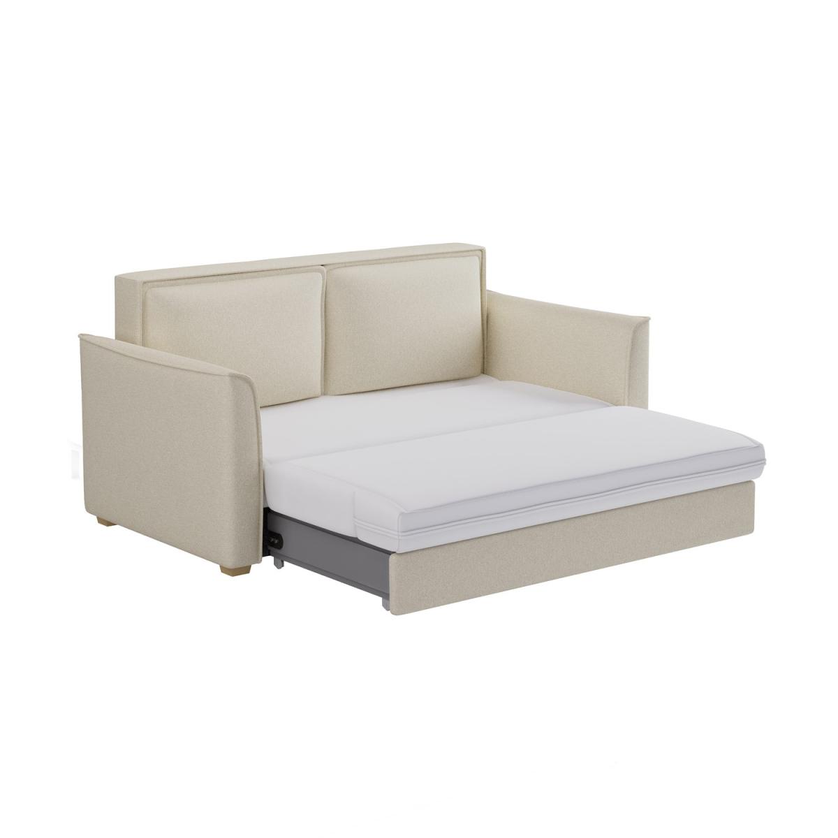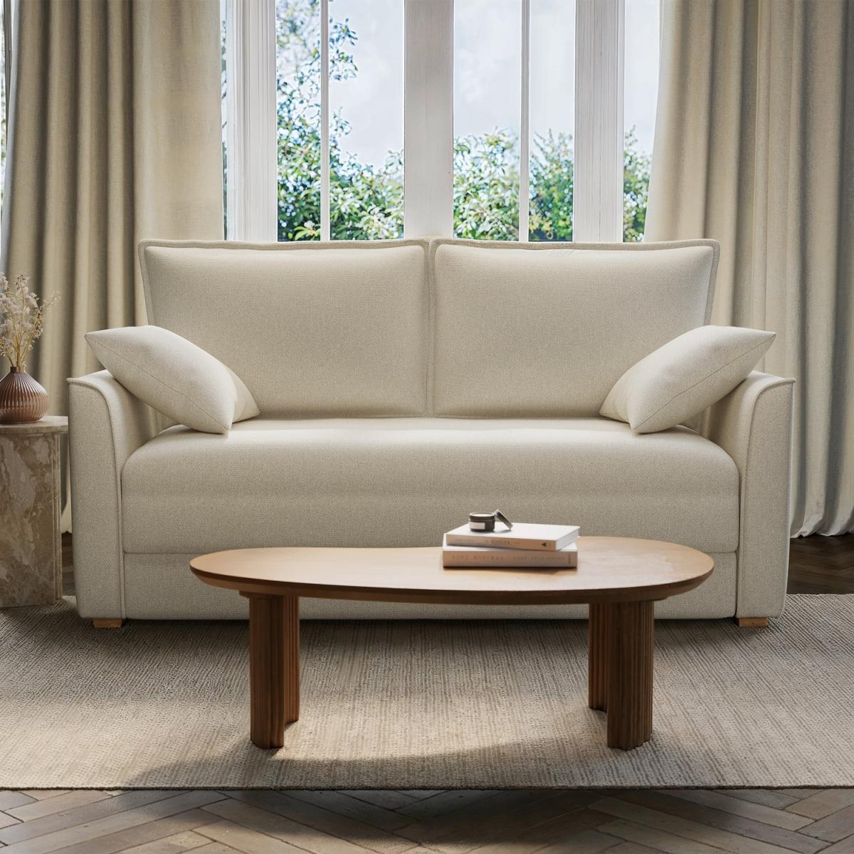 Foam filled Quickly transforms from a cosy sofa to a spacious bed, ideal for overnight guests and small spaces. The clever double fold-out design creates a large bed for you to stretch out and relax in. The soft foam filling provides cosy, supportive seating for a great night's sleep. The clever concealed storage is perfect for keeping bedding and essentials tucked away. Ideal for small apartments, guest rooms, or multipurpose spaces, offering seating and sleeping in one smart design. Easy to remove and clean cushion covers for hassle-free maintenance. Enhance your living space with the Hunter 2-Seater Pull-Out Sofa Bed. Wrapped in soft, durable, water-repellent fabric made from recycled materials, it not only offers elegance and comfort but also a more eco-friendly choice for your home. The neutral beige colour adds a cosy touch, while the foam-filled cushions provide a plush seating experience. Its easy pull-out design transforms it into a large bed in seconds, making it perfect for overnight guests or small spaces. Built in storage is the perfect place for bedding when its time to switch back from bed to sofa. Two matching scatter cushions are included to complete the look, ensuring that the Hunter Sofa Bed will look great in any space.