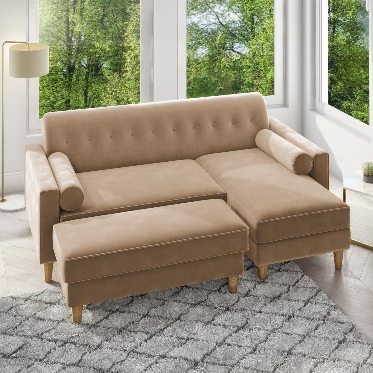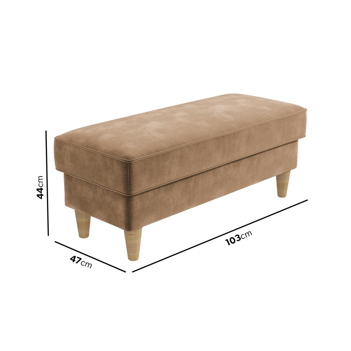 Use as a footstool, a bench to offer some extra seating for your guests, or create a stunning centrepiece in your living room with a stack of books and a candle on a decorative tray. Upholstered in a soft-to-touch beige velvet, this piece will never go out of fashion and is also the perfect match for our Idris velvet corner sofa. Just attach the light wooden legs and you're ready to relax in style with your footstool.