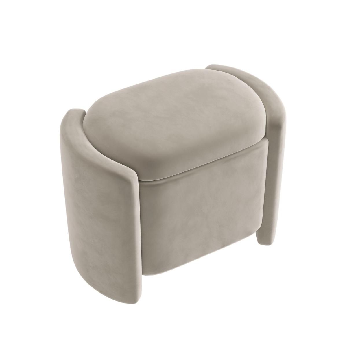 With its gently curved edges and sleek, minimalist silhouette, the Taryn stool brings a modern touch of elegance to your bedroom, perfect for smaller spaces. Upholstered in a soft to touch, beige velvet fabric, this stool offers a cosy feel, perfect for elevating the style of any interior. Ideal as a dressing table stool or a decorative accent, it seamlessly blends with any interior decor and provides storage solution. Built with high-quality materials, this bench ensures durability and comfort while maintaining its stylish appearance. Add a touch of sophistication and practicality to your home with the Taryn ottoman stool. Upholstered in a soft-to-touch beige velvet fabric, this chic ottoman stool not only provides a plush, comfortable seat but also features a top that lifts to reveal ample hidden storage for all your essentials. This stool is perfect addition to enhance your bedroom or dressing room.