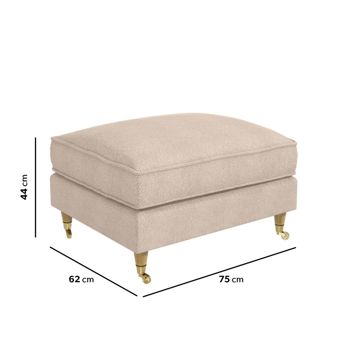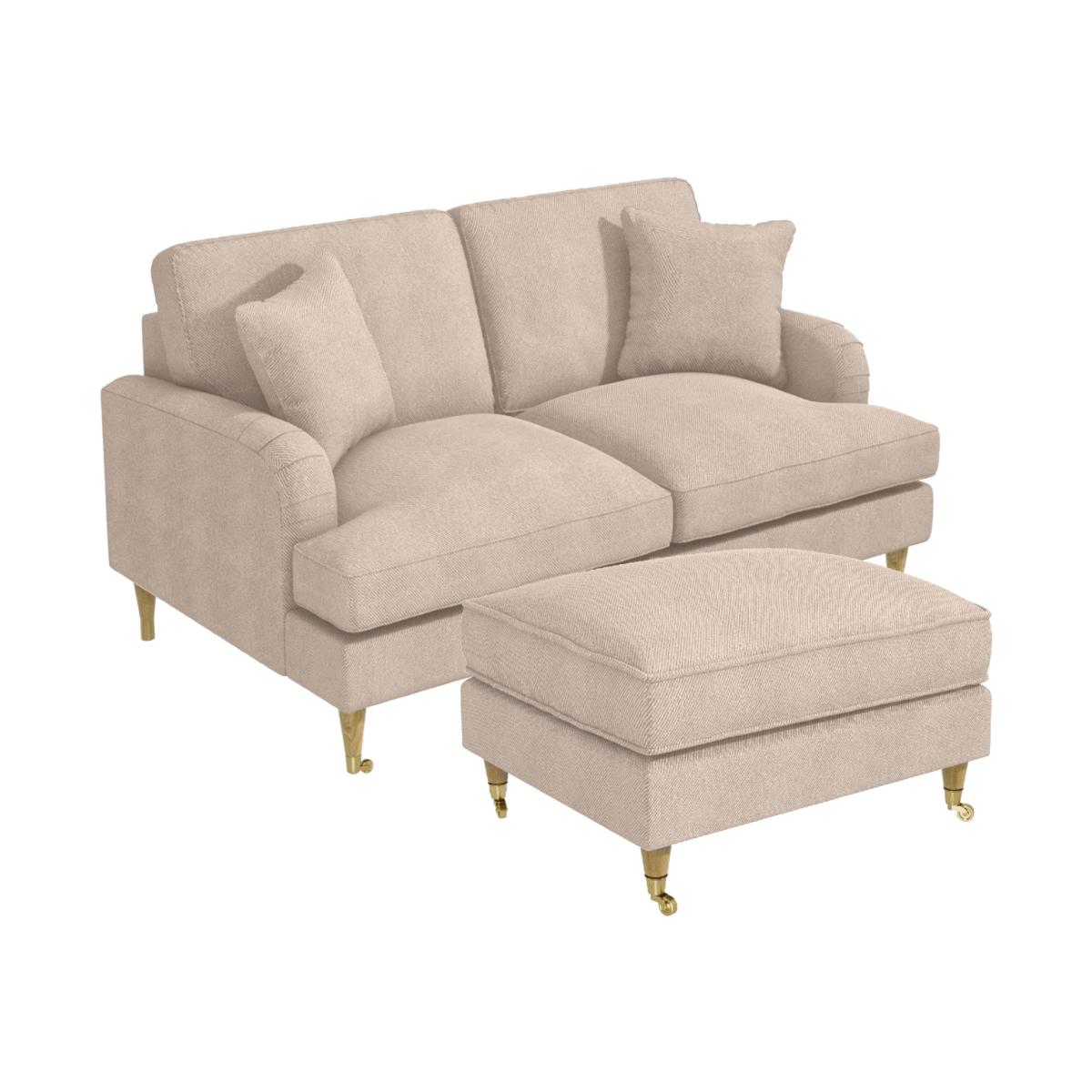 Foam filled Scatter Cushions Included This bundle includes: 1 x Beige Woven Fabric 2 Seater Sofa – Payton 1 x Beige Woven Footstool – Payton Features we love Soft woven beige 2-seater sofa and footstool set The sofa comes with two matching scatter cushions Removable cushion covers are easy to wipe clean The footstool can also be used as an additional seat Foam filled for super comfy living room seating All about me Create the ultimate cosy living room with this Payton woven beige set, featuring a 2-seater sofa and footstool. It's the perfect combination of style and practicality, the neutral upholstery with gold accent legs looks stunning while being the ideal place to relax with your feet up after a long day. Need to know Sofa Overall dimensions:W150 x D96 x H86 cm Seating dimensions: W124 x D60 cm Packed dimensions: W152 x D98 x H61 cm Packed weight: 50 kg Colour: Beige Finish:Woven upholstery and wooden legs Material:Woven fabric, wooden frame and legs and metal castors Filling: Foam Assembly required: Yes - just attach the legs Footstool Overall dimensions: W75 x D62 x H44 cm Packed dimensions:W77 x D64 x H31 cm Packed weight: 10 kg Colour: Beige Finish:Woven upholstery and wooden legs Material:Woven fabric, wooden frame and legs and metal castors Assembly required: Yes - just attach the legs