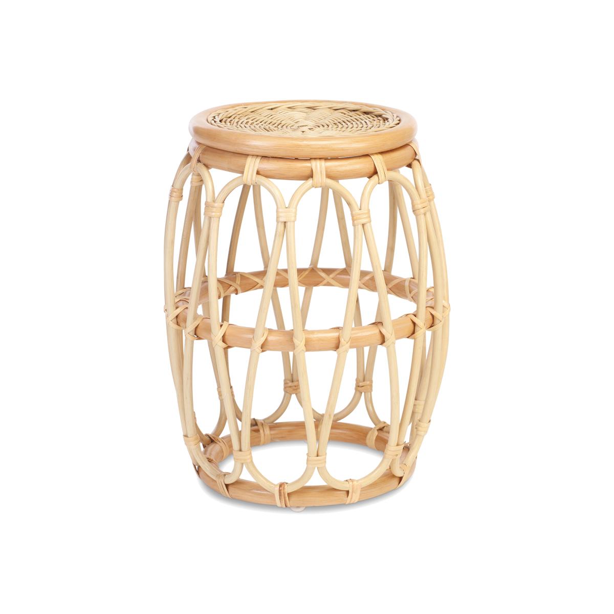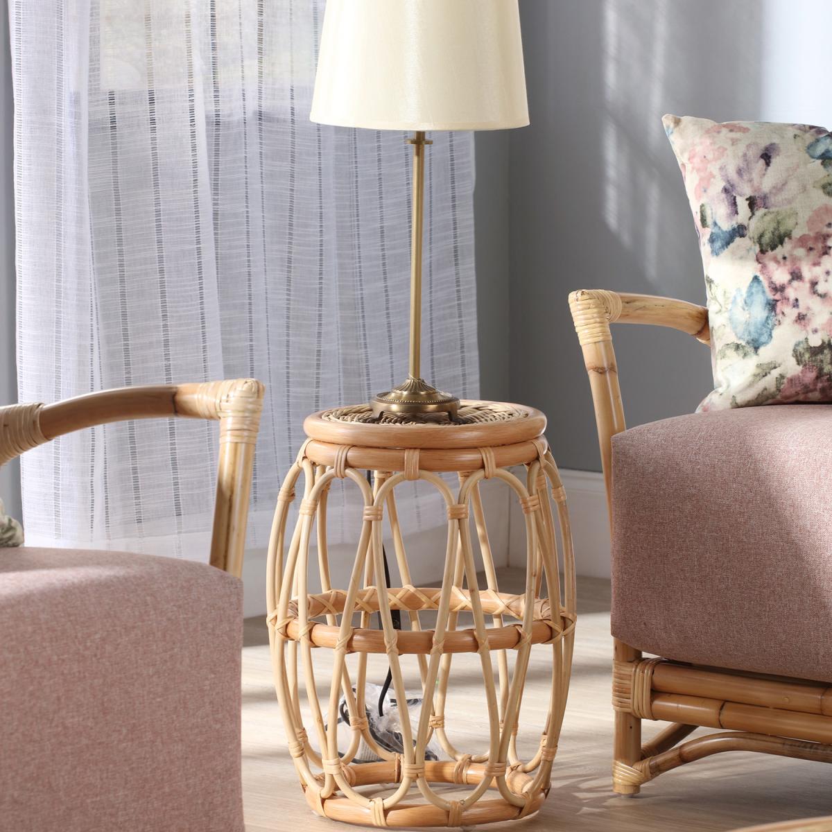 A sustainable natural rattan lamp table with 3 levels of circular cane and intricate rattan detailing