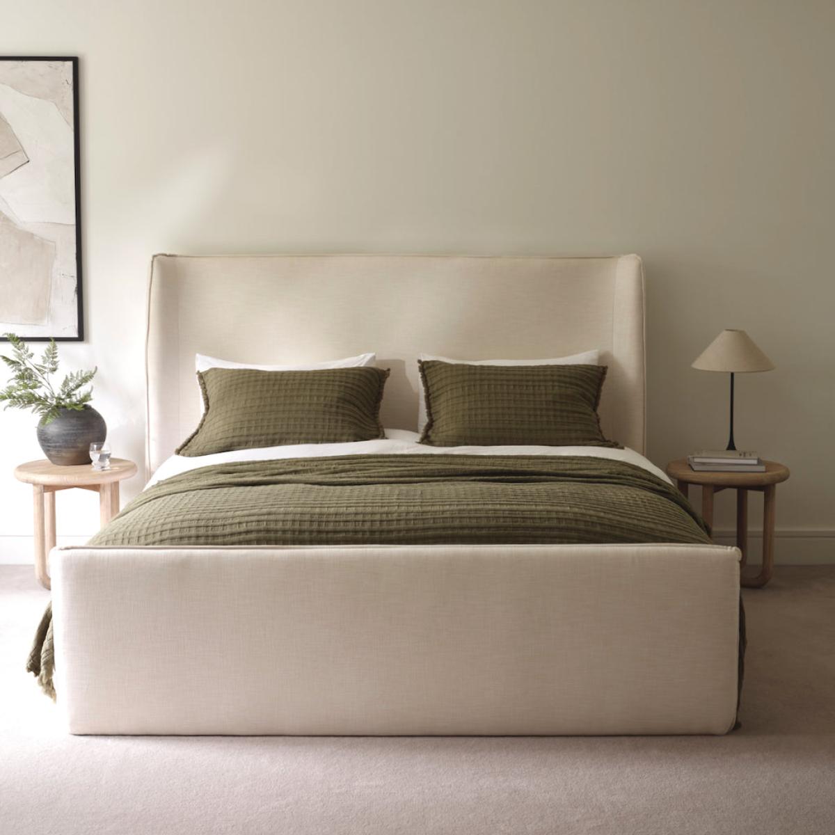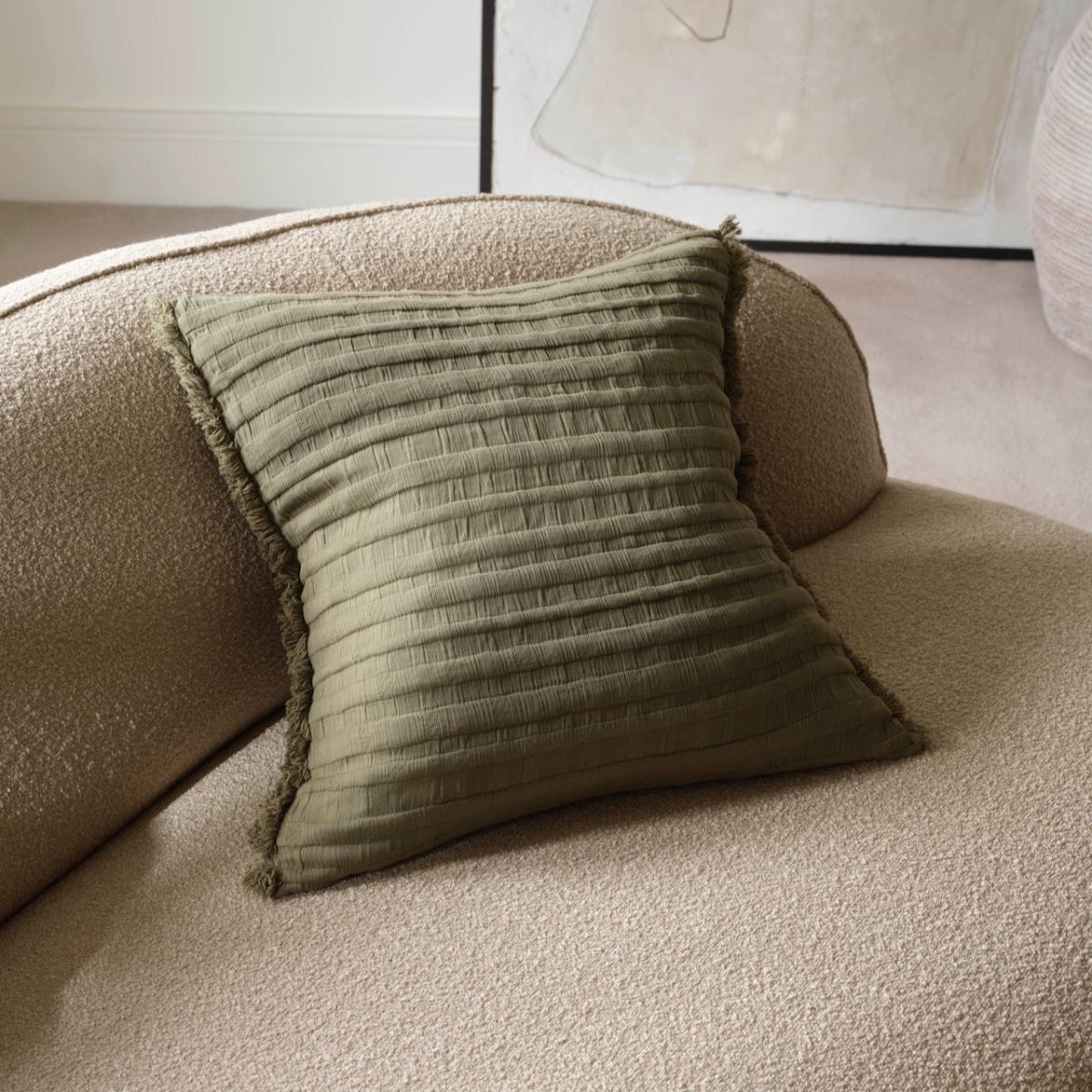 The Beja range of cushion covers and throws make layering your bed easy. Designed with beautifully textured pattern, these super soft textiles provide an abundance of rich warmth to the layering of your bed. Finished with a heavy fringed edge the overall look is one of sheer luxury and sophistication. Choose from 2 different colour ways: soft putty or rich khaki and 3 different sizes so you can curate your own style accordingly. Sold individually, does not include fillers.