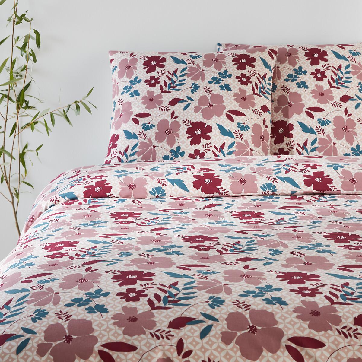 Cotton bed set. Floral patterns on a pink and white background. Ultra soft and comfortable pure cotton. The set includes the duvet cover and its matching square pillowcase.