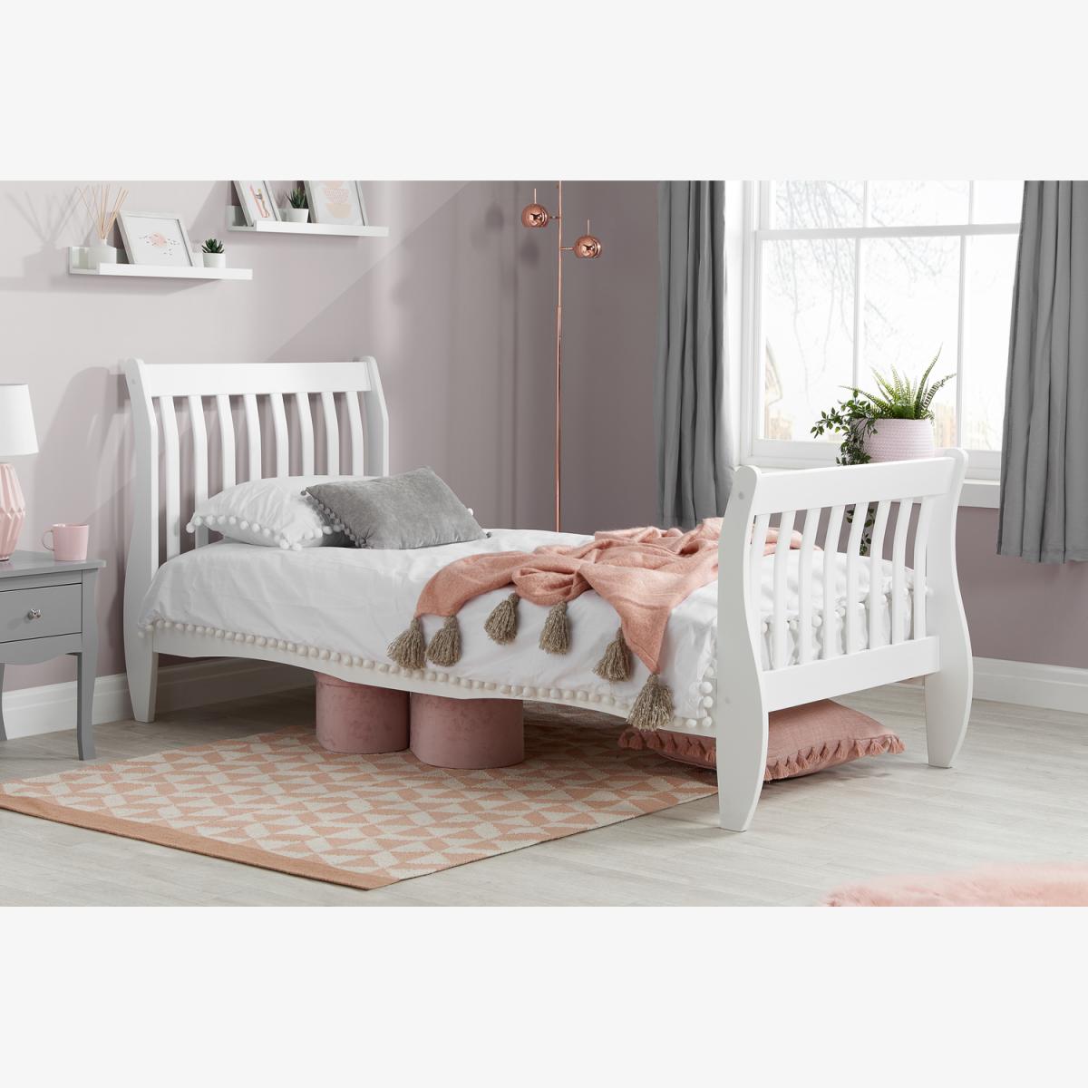 The Belford single bed in white is a versatile piece that easily fits into a range of interior styles, from Scandi minimalism to classic cottage looks. Its clean, simple lines and neutral paint make it a great foundation for layering textures and colours, whether with soft pastels, bold accents, or playful patterns. I love it paired with cosy textiles like chunky throws or textured bedding to create a welcoming, restful space. Practical styling tips include adding under-bed storage for maximise space and choosing a statement headboard or a colourful bedspread to personalise the look. Overall, it’s a practical and stylish option that offers durability with a modern aesthetic, ideal for a child’s or guest bedroom.