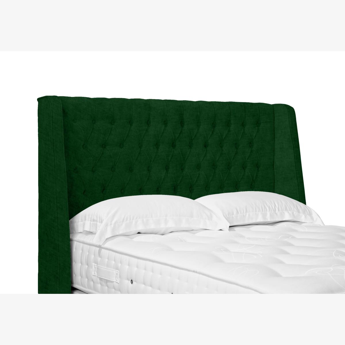 Discover The Artisan Collection, designed to bring handcrafted luxury and style to your bedroom. This premium range includes a selection of divan bases – from traditional platform tops offering a firmer feel to sumptuous pocket sprung options for enhanced mattress comfort. Many divan bases are available with storage drawers, in both standard and on-trend shallow designs. Complement your divan with one of the collection’s striking floor-standing headboards, including standout winged designs. Each piece in The Artisan Collection is beautifully upholstered in a wide choice of luxury fabrics and handcrafted in the UK, ensuring exceptional quality and elegant style for your sleep sanctuary. With its deep cushioning and five rows of buttoning, this luxuriously winged and buttoned floor standing headboard brings style and grandeur to any bedroom. Why you'll love it This winged headboard is impressively tall and sumptuously upholstered. Fully upholstered from top to floor for a flawless finish and a luxurious look. Made with sustainable FSC-sourced wood. In a choice of beautiful fabrics. Handcrafted in the UK. Find the Belgrave high floor standing headboard only at Furniture Village. What you need to know This floor standing headboard is supplied with bolts to attach it to a divan base. Available in single, small double, double, king and super king sizes. 140 cm tall. Clean regularly using a soft brush or vacuum with the curtain attachment. Deal with any spills promptly. Professional cleaning advised for oil- and grease-based stains. Some fabrics can show wear on areas of more use or in direct sunlight. Item code: BELGH150--047