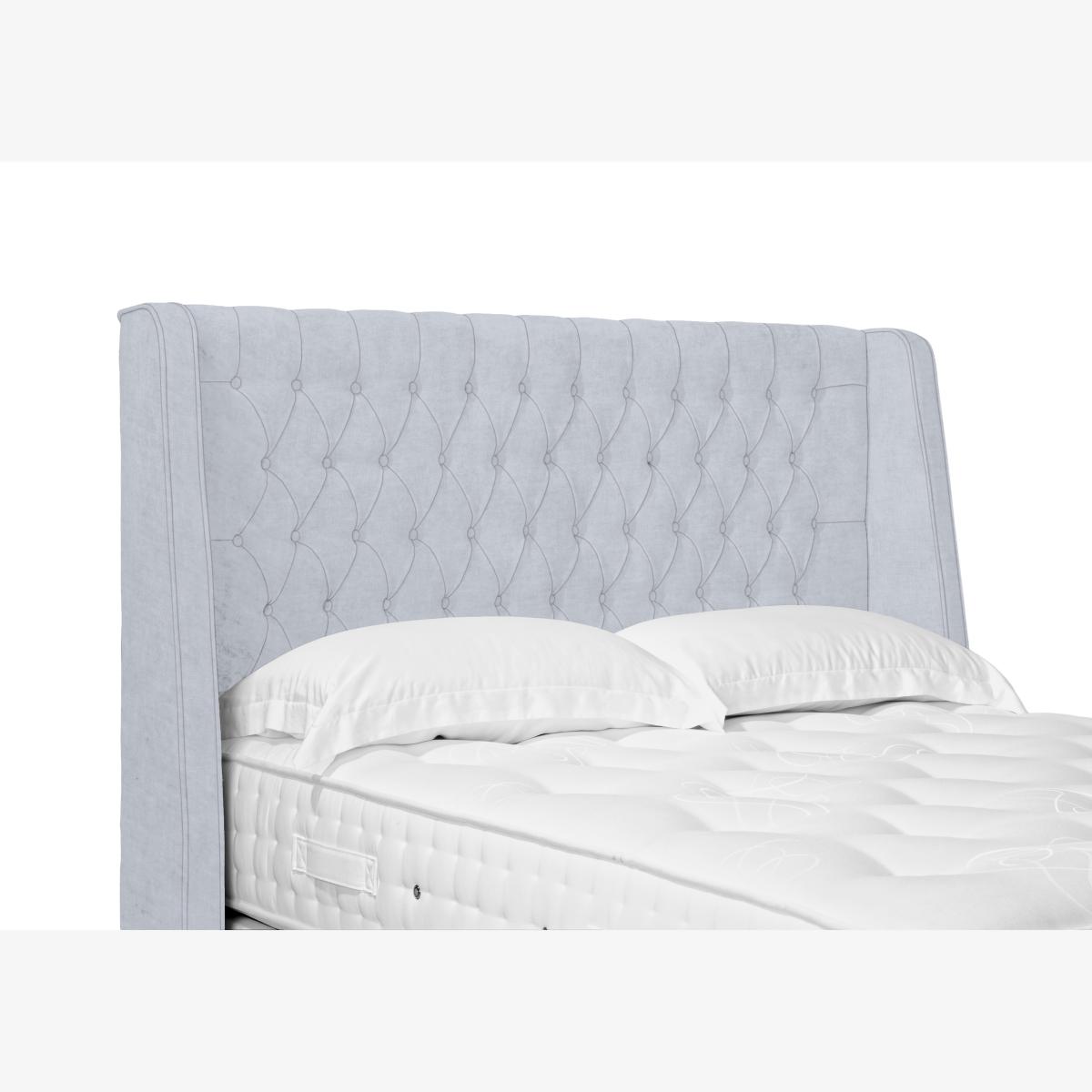 Discover The Artisan Collection, designed to bring handcrafted luxury and style to your bedroom. This premium range includes a selection of divan bases – from traditional platform tops offering a firmer feel to sumptuous pocket sprung options for enhanced mattress comfort. Many divan bases are available with storage drawers, in both standard and on-trend shallow designs. Complement your divan with one of the collection’s striking floor-standing headboards, including standout winged designs. Each piece in The Artisan Collection is beautifully upholstered in a wide choice of luxury fabrics and handcrafted in the UK, ensuring exceptional quality and elegant style for your sleep sanctuary. With its deep cushioning and five rows of buttoning, this luxuriously winged and buttoned floor standing headboard brings style and grandeur to any bedroom. Why you'll love it This winged headboard is impressively tall and sumptuously upholstered. Fully upholstered from top to floor for a flawless finish and a luxurious look. Made with sustainable FSC-sourced wood. In a choice of beautiful fabrics. Handcrafted in the UK. Find the Belgrave high floor standing headboard only at Furniture Village. What you need to know This floor standing headboard is supplied with bolts to attach it to a divan base. Available in single, small double, double, king and super king sizes. 140 cm tall. Clean regularly using a soft brush or vacuum with the curtain attachment. Deal with any spills promptly. Professional cleaning advised for oil- and grease-based stains. Some fabrics can show wear on areas of more use or in direct sunlight. Item code: BELGH150--019