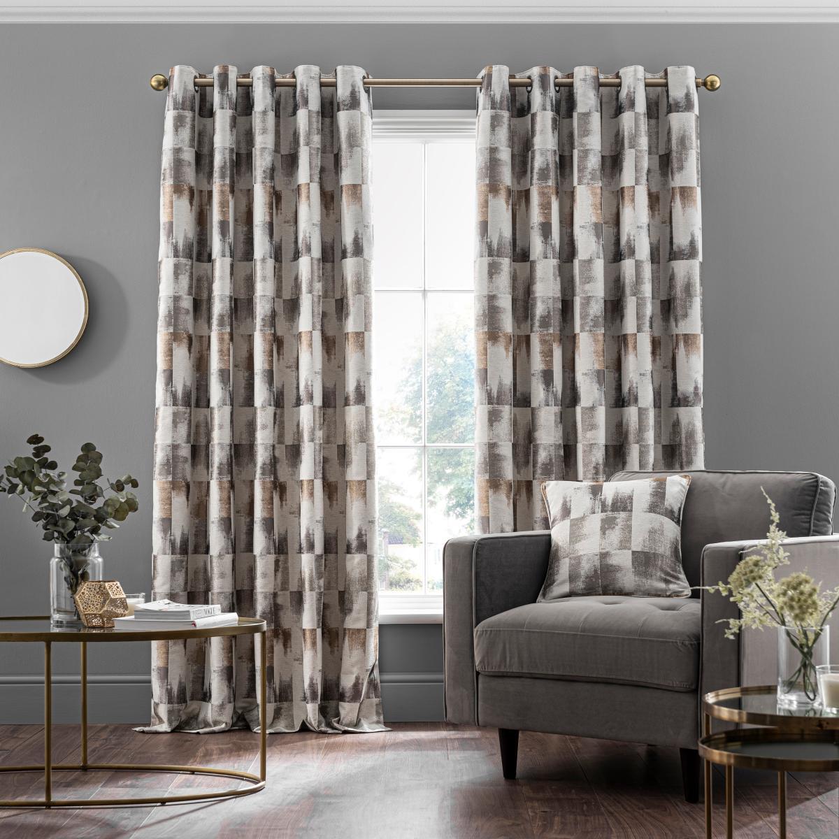 * 1 pair - includes 2x curtain panels* Luxury jacquard face fabric* Modern eyelet header* 100% recycled lining* Matching cushion available* Available in a choice of colours and sizes Easy to install with the modern eyelet header, the Belgravia Eyelet Curtains will add a modern and welcoming touch to your bedroom or living areas. Made beautifully from polyester, the curtains have a 100% recycled lining, alongside a luxury jacquard design, perfect for any room of the house. The stylish curtains can be paired with the matching cushion, to give your home a coordinated look. Please note: Pattern matching cannot be guaranteed across multiple pairs of curtains. The size of the curtains shown is the size of 1 panel, you will receive 2 panels of this size. Choose the width that is closest to your pole length for full look.