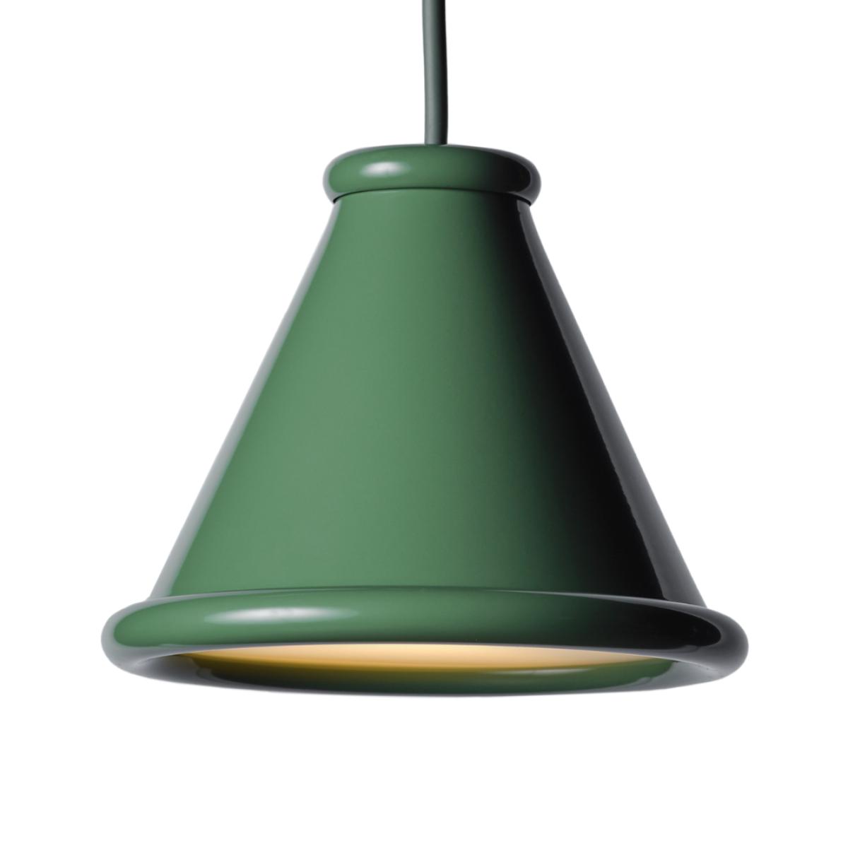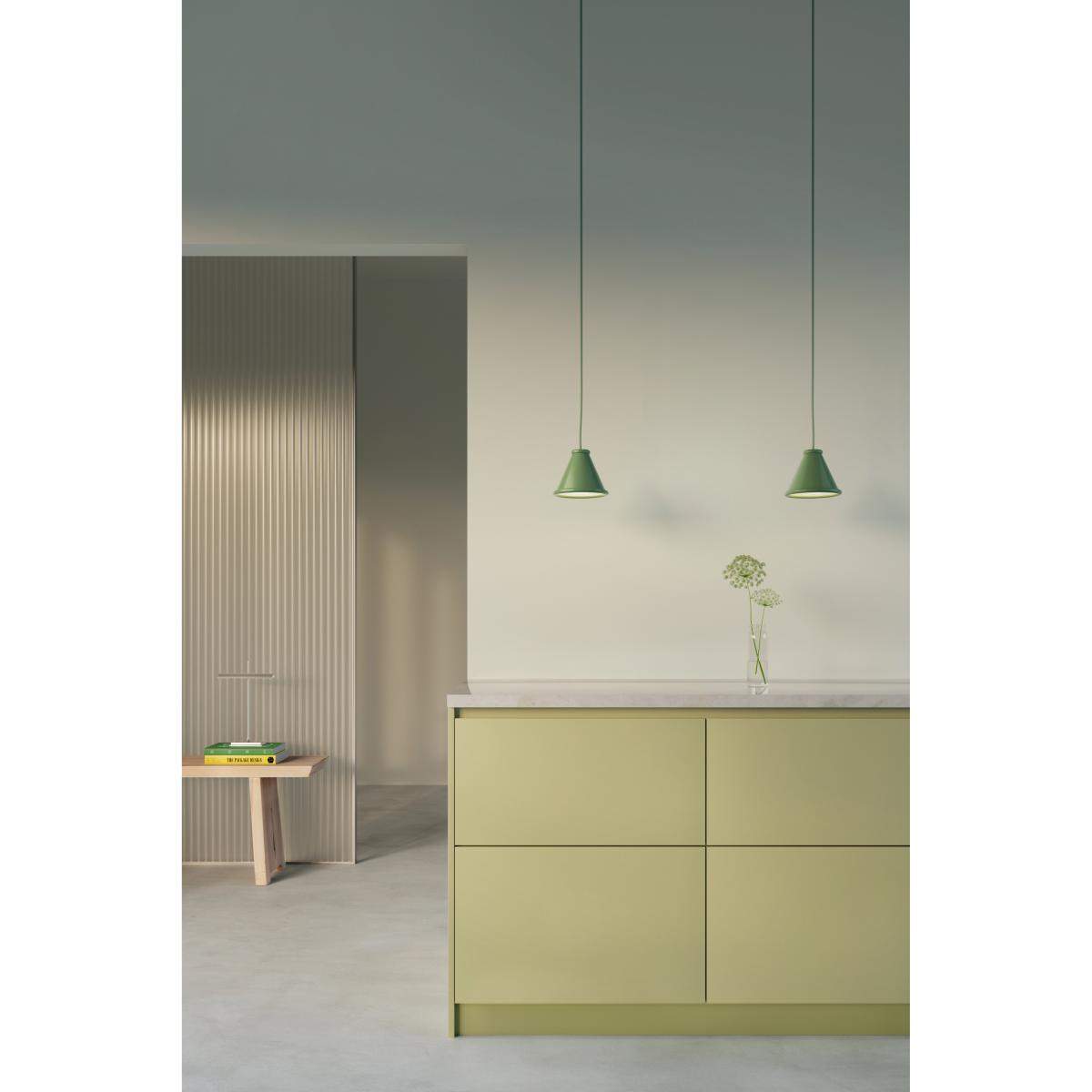 I love this little light because of its sleek, modern shape and the bold splash of reseda green that can act as a subtle colour accent. It works particularly well in contemporary or minimal interiors, adding a pop of colour without overwhelming the space. It's ideal for small to medium-sized rooms, such as kitchens, dining areas, or even home offices. Practical styling tips include pairing it with simple, neutral-coloured furnishings to let the pendant stand out, or hanging multiple units at varying heights for an interesting visual effect. Its size and colour make it versatile enough to complement both Scandinavian-inspired schemes and more eclectic spaces, adding a fresh, sophisticated touch to the ceiling.