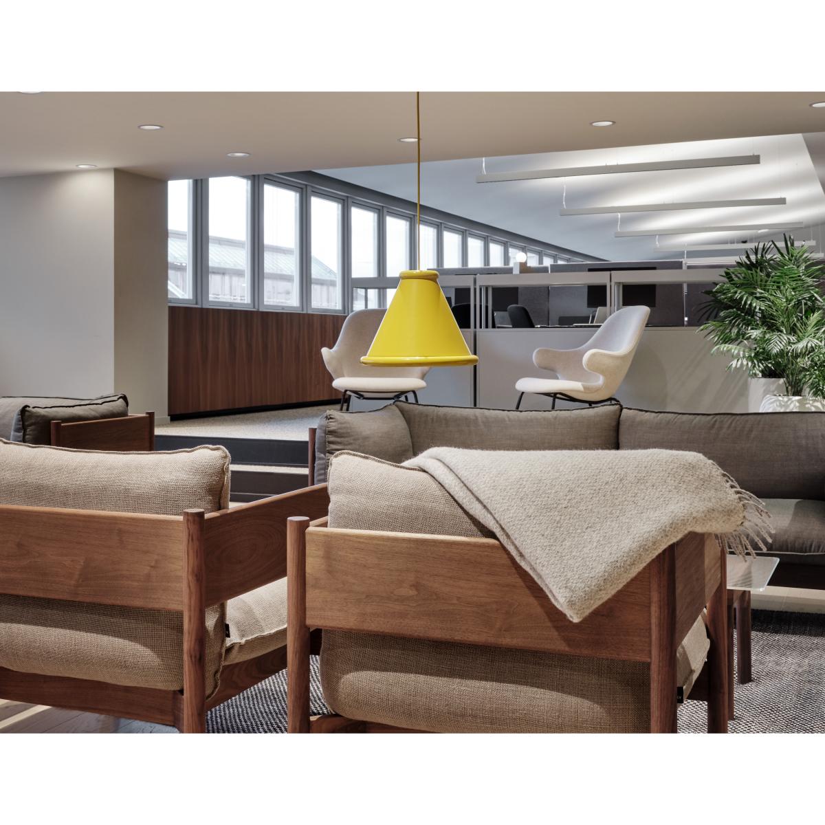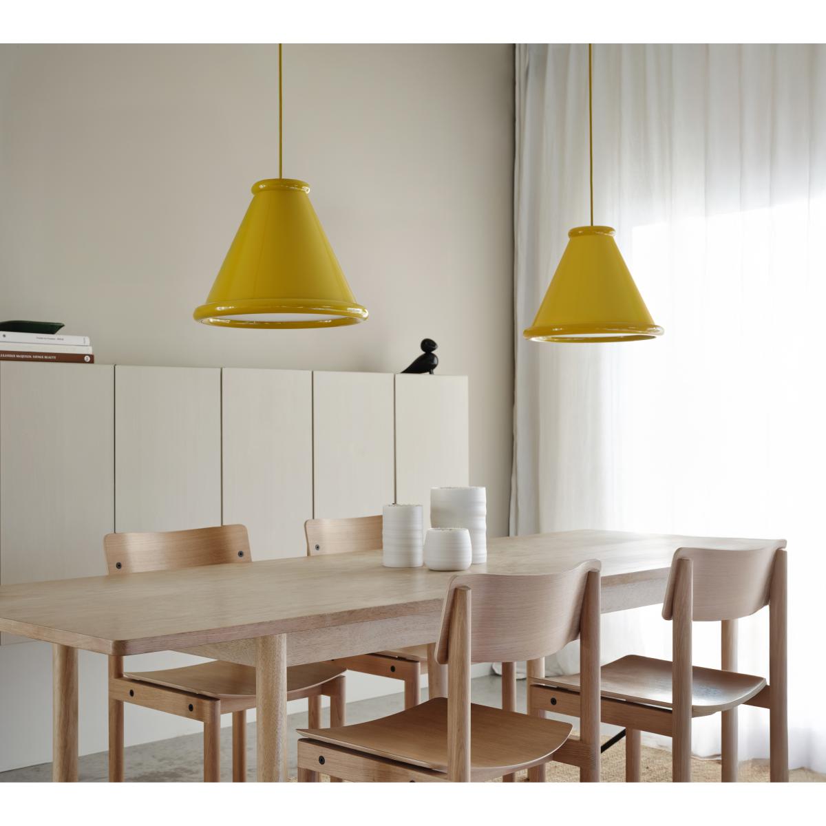 I love this large honey yellow pendant for adding a pop of colour and warmth to modern or eclectic interiors. Its bold, clean shape works well in kitchens, dining areas, or even cosy living rooms where a statement piece is desired. For styling, consider pairing it with natural materials like wood or muted tones to let the colour really stand out. It also works beautifully with exposed filament bulbs for a warm, inviting glow, and looks great when grouped with smaller pendants in contrasting shades for a layered lighting effect. Keep the surroundings relatively simple to let the pendant shine, or use it as the focal point in a vibrant, playful scheme.