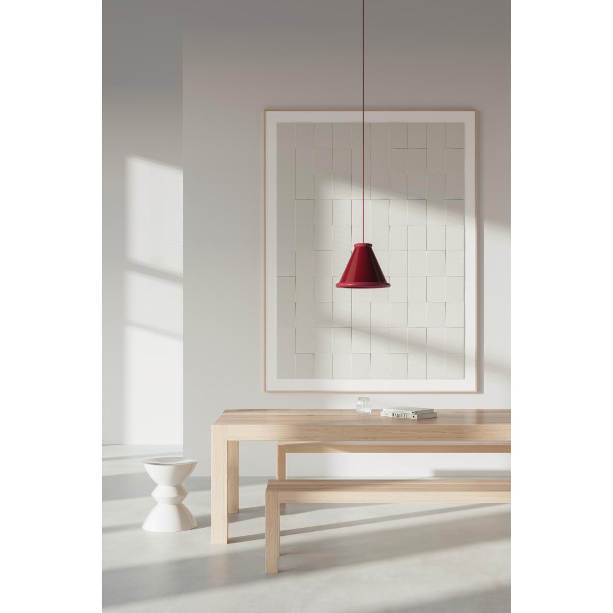 The Belid Belle pendant is a fantastic choice for adding colour and personality to your space. I love its bold wine red hue with violet undertones, which works beautifully in modern, eclectic, or Scandinavian interiors that benefit from a splash of warmth and richness. It’s particularly effective when used in kitchens, dining rooms, or even a cosy reading nook, where its statement presence can be appreciated. Practical styling tips include pairing it with muted or neutral ceilings to make the colour pop, or combining with warm metallic accents like brass or copper for a cohesive look. Keep the surrounding décor minimal to let the pendant shine, and consider installing it at varying heights for a dynamic and layered ceiling arrangement.