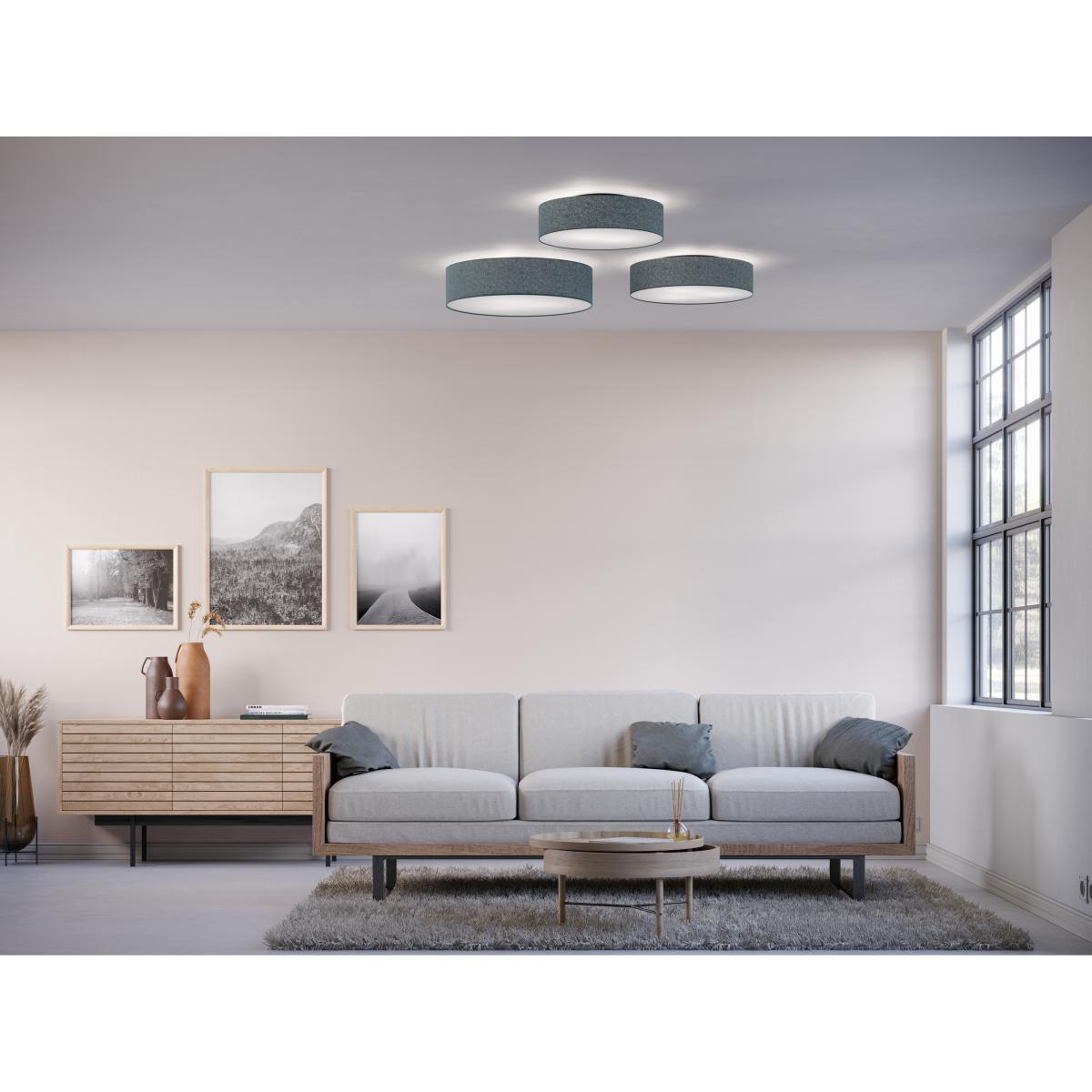 Soft ceiling lamp Ø60 cm from Swedish Belid äks made of wool and metal. The small ceiling lamp, which is made of a fireproof and sound-absorbing material, creates a warm and modern feeling, regardless of whether you hang it in your bedroom or hall.