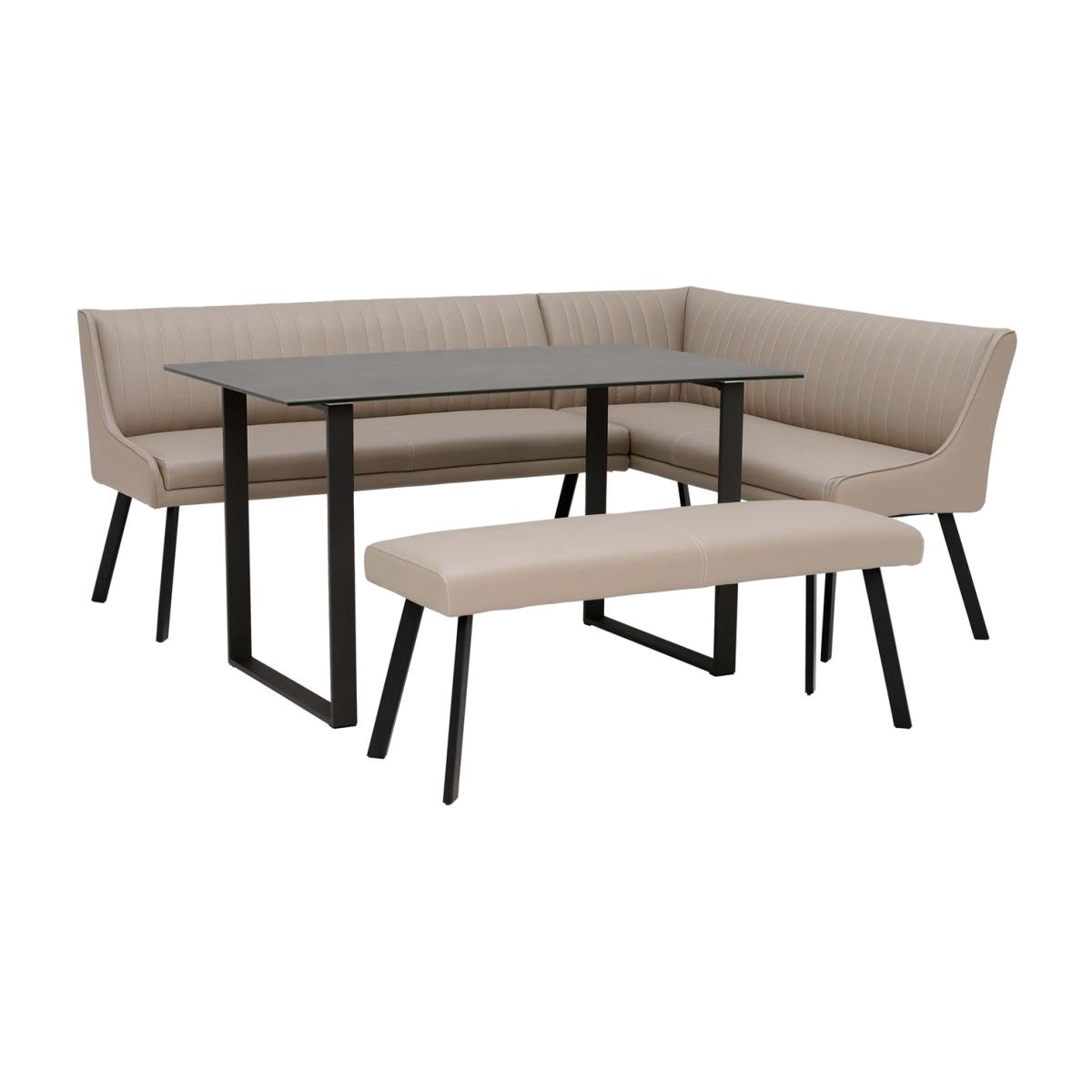 Contemporary and chic, the Belize Left Hand Corner Dining Set allows you to congregate your nearest and dearest together in style. Thespringy foam and smooth PU leather upholstery featuring a vertical elegant stitch and industrial steel legs boasts both comfort and class. The glossy ceramic glass table topis not only ultramodern but also heat resistant, hardwearing and easy to clean making it extremely practical. The Belize Left Hand Corner Dining can beyond question spruce up any dining space.