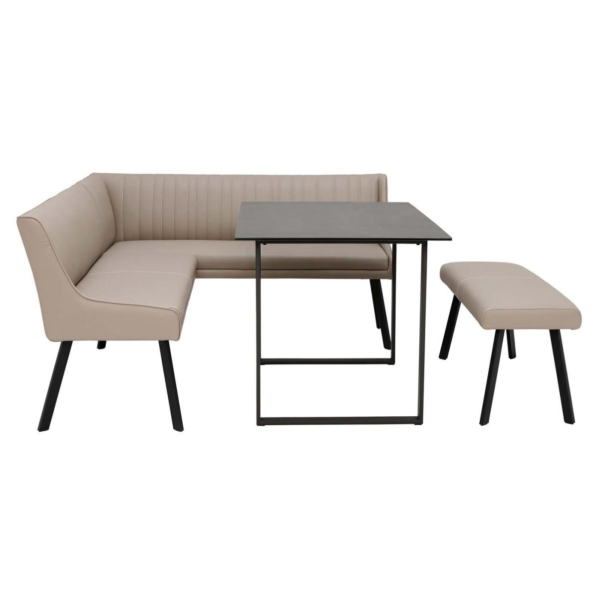 Design. Contemporary and chic, the Belize Left Hand Corner Dining Set allows you to congregate your nearest and dearest together in style. Thespringy foam and smooth PU leather upholstery featuring a vertical elegant stitch and industrial steel legs boasts both comfort and class. The glossy ceramic glass table topis not only ultramodern but also heat resistant, hardwearing and easy to clean making it extremely practical. The Belize Left Hand Corner Dining can beyond question spruce up any dining space.