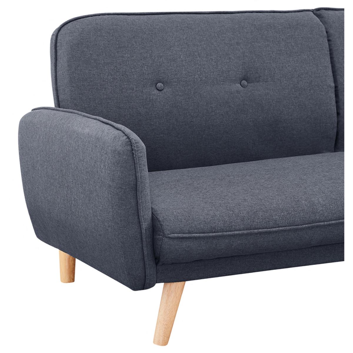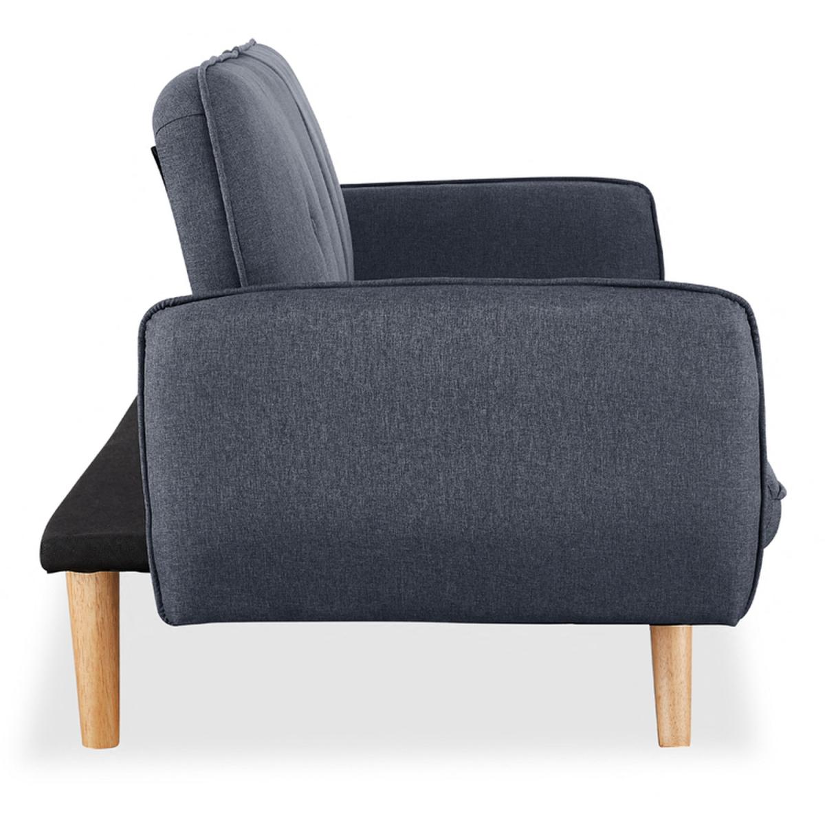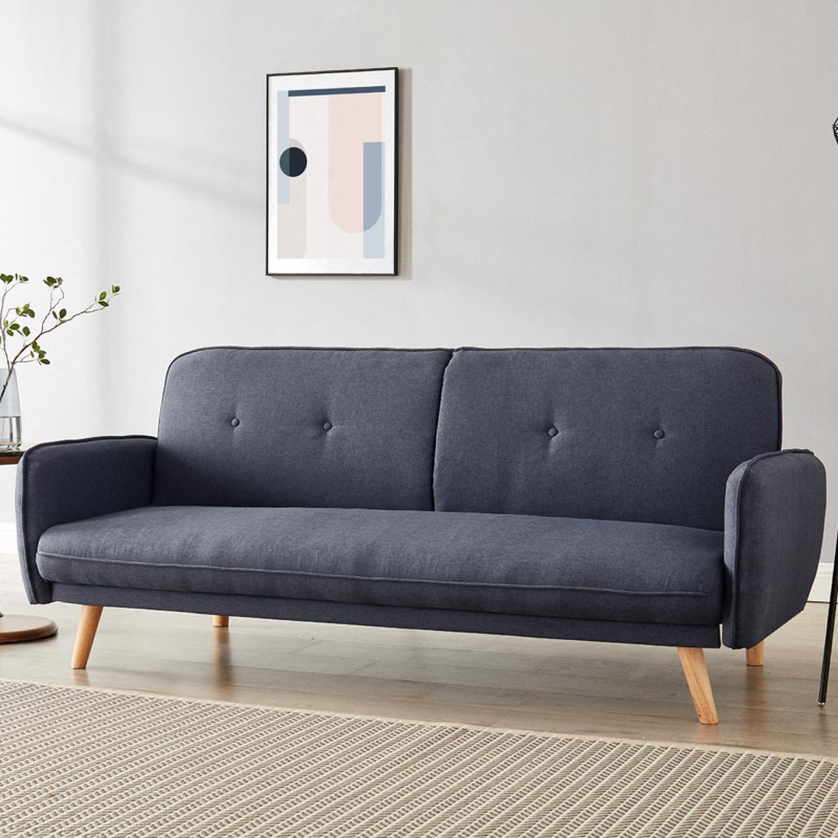 Introducing BELL, a 3-seater fabric sofa bed available in a colour palette of charcoal and mustard fabric BELL features tufted backrest and plain seat, with square armrests giving it a contemporary feel and standing on splayed natural wooden legs. Convertible design - this sofa bed has a simple clic-clac mechanism that allows it to swiftly and simply transform from a sofa to a recliner to a bed, making it ideal for overnight guests. This sofa bed cannot be freely positioned in your room. The back of this sofa bed is upholstered in a black woven fabric that does not match the colour of the sofa bed fabric. Due to differences in lighting and screen resolution on laptop, desktop, and mobile devices, some fabrics may appear somewhat different in person. To get the most out of your sofa bed we recommend gently cleaning with the upholstery attachment of your vacuum cleaner or using a soft hand brush once per week. You might need to screw the legs to the underside of some of our sofa beds since they don't all have pre-drilled holes. All of our sofa beds come with an easy-to-follow assembly guide. Delivered by our friendly couriers on a 2-man delivery service within 3-7 working days. The courier will deliver to a room of your choice. Dimensions As A Sofa: W196cm x D85cm x H80cm. Dimensions Sleeping Area: W170cm x D103cm x H38cm