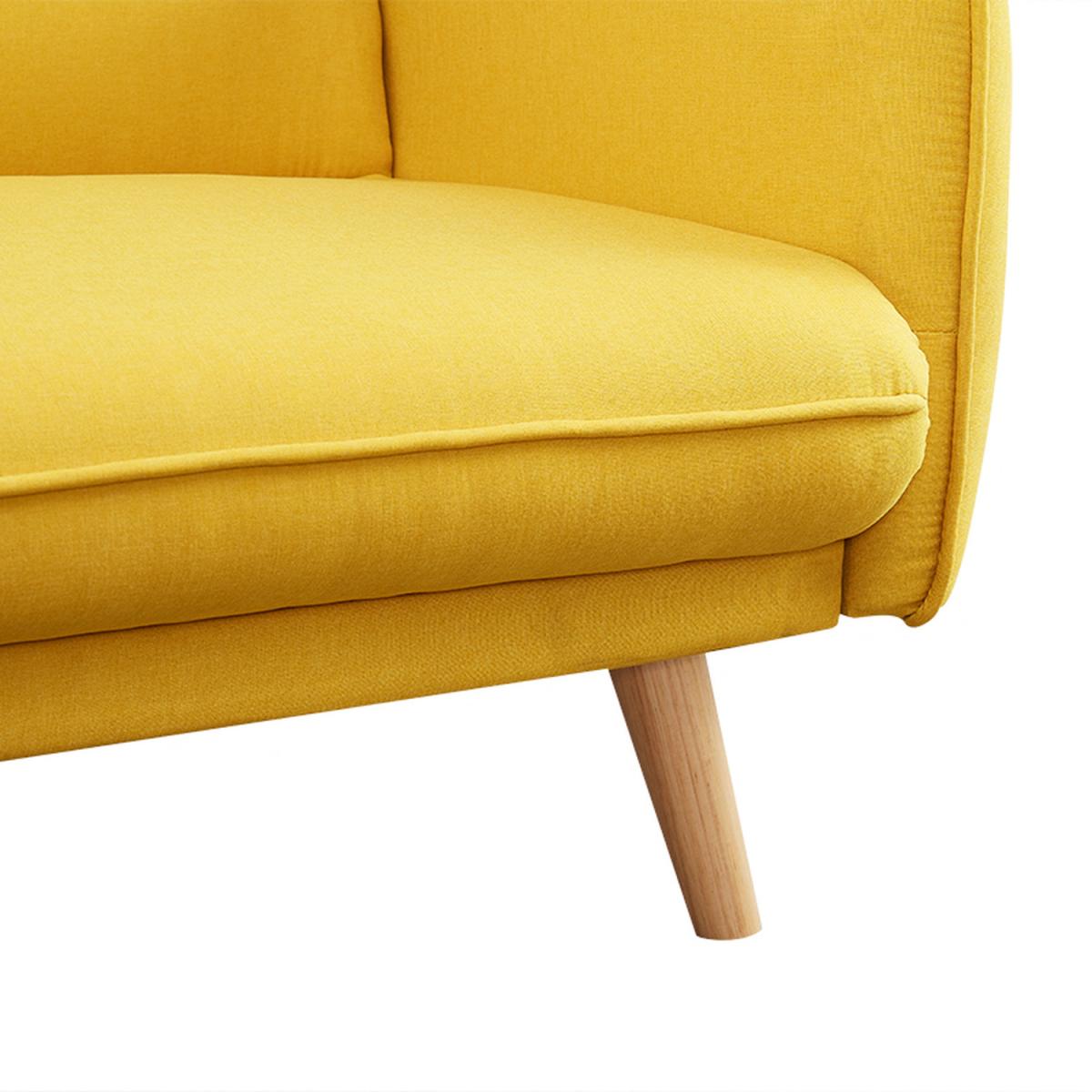 Introducing BELL, a 3-seater fabric sofa bed available in a colour palette of charcoal and mustard fabric BELL features tufted backrest and plain seat, with square armrests giving it a contemporary feel and standing on splayed natural wooden legs. Convertible design - this sofa bed has a simple clic-clac mechanism that allows it to swiftly and simply transform from a sofa to a recliner to a bed, making it ideal for overnight guests. This sofa bed cannot be freely positioned in your room. The back of this sofa bed is upholstered in a black woven fabric that does not match the colour of the sofa bed fabric. Due to differences in lighting and screen resolution on laptop, desktop, and mobile devices, some fabrics may appear somewhat different in person. To get the most out of your sofa bed we recommend gently cleaning with the upholstery attachment of your vacuum cleaner or using a soft hand brush once per week. You might need to screw the legs to the underside of some of our sofa beds since they don't all have pre-drilled holes. All of our sofa beds come with an easy-to-follow assembly guide. Delivered by our friendly couriers on a 2-man delivery service within 3-7 working days. The courier will deliver to a room of your choice. Dimensions As A Sofa: W196cm x D85cm x H80cm. Dimensions Sleeping Area: W170cm x D103cm x H38cm