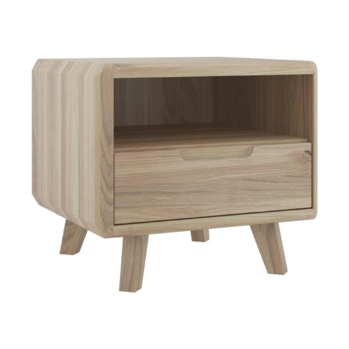 I’m a big fan of the Como bedside table for its clean lines, gentle rounded corners and light oak finish - it’s a versatile piece that slots straight into Scandinavian, Japandi or modern minimalist schemes. The open shelf is perfect for a slim book stack or a woven basket, while the single drawer keeps charging cables and bedtime essentials out of sight. Styling-wise, keep the top simple: a low-profile lamp, a small pot plant or a ceramic dish for loose change. If you want to layer, a neat tray can corral your bedside reading glasses and a water carafe. Pair it with soft-textured linens in muted tones to let the wood grain really stand out.