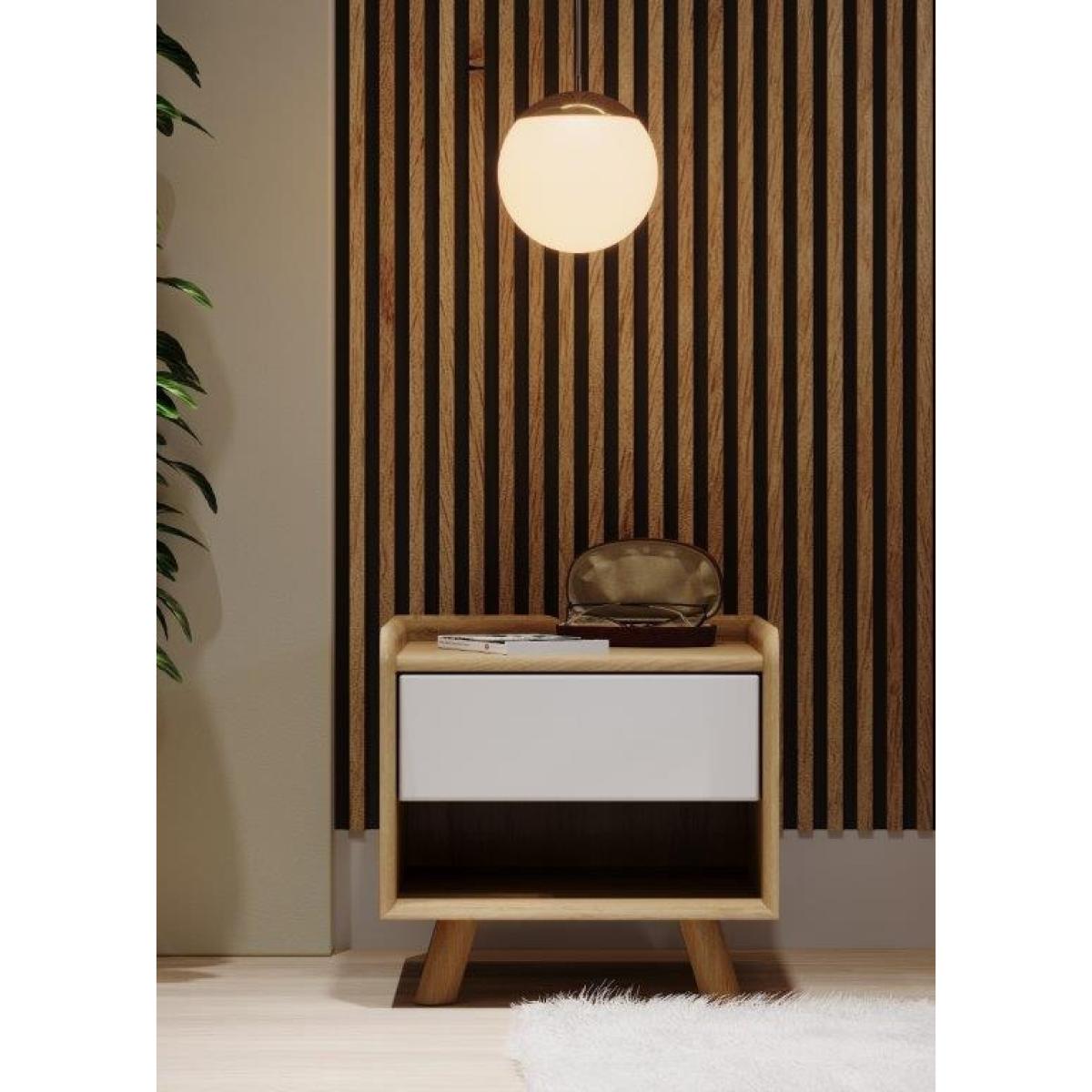 The Bell & Stocchero Lago 1 drawer bedside cabinet offers modern style and lots of storage space. Made from classic solid oak with a sleek white finish and features a single drawer with a spacious interior to organise those bits and bobs. Combining scandi-style materials and a mid-century design, this piece is able to compliment a range of aesthetics. Compatible with the wider Bell & Stocchero Lago bedroom range  Supported by four oak wood, cylindrical legs. Height - 42.8cm Width - 45cm Depth - 44.8cm Assembled All screens vary in colour reproduction and whilst every effort has been made to display the colour as accurately as possible it is for guidance only.