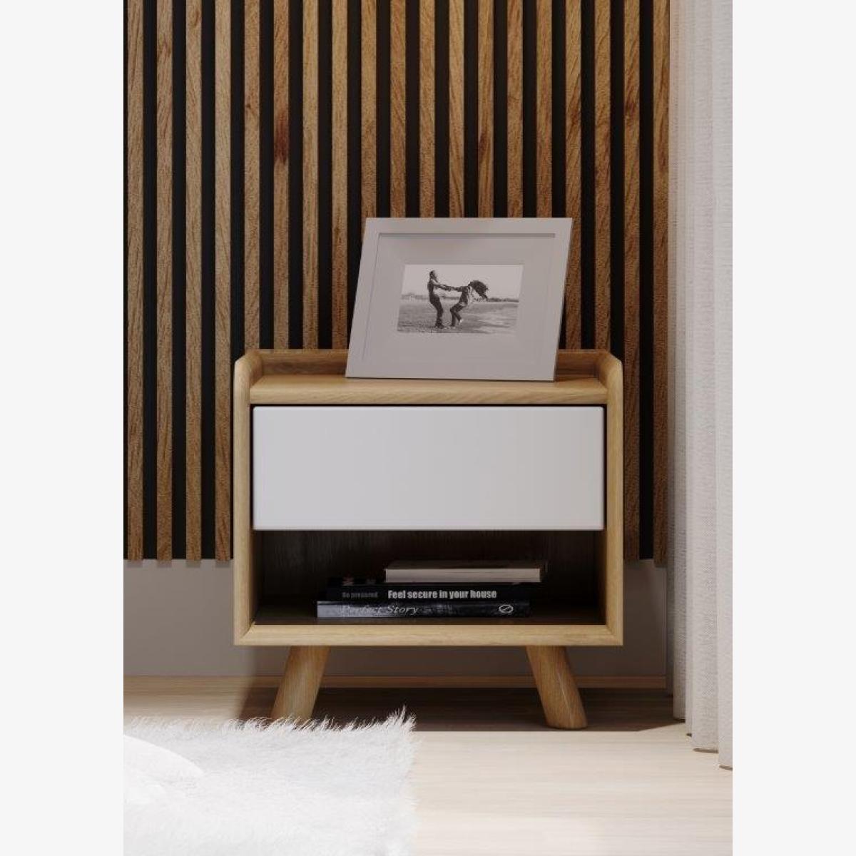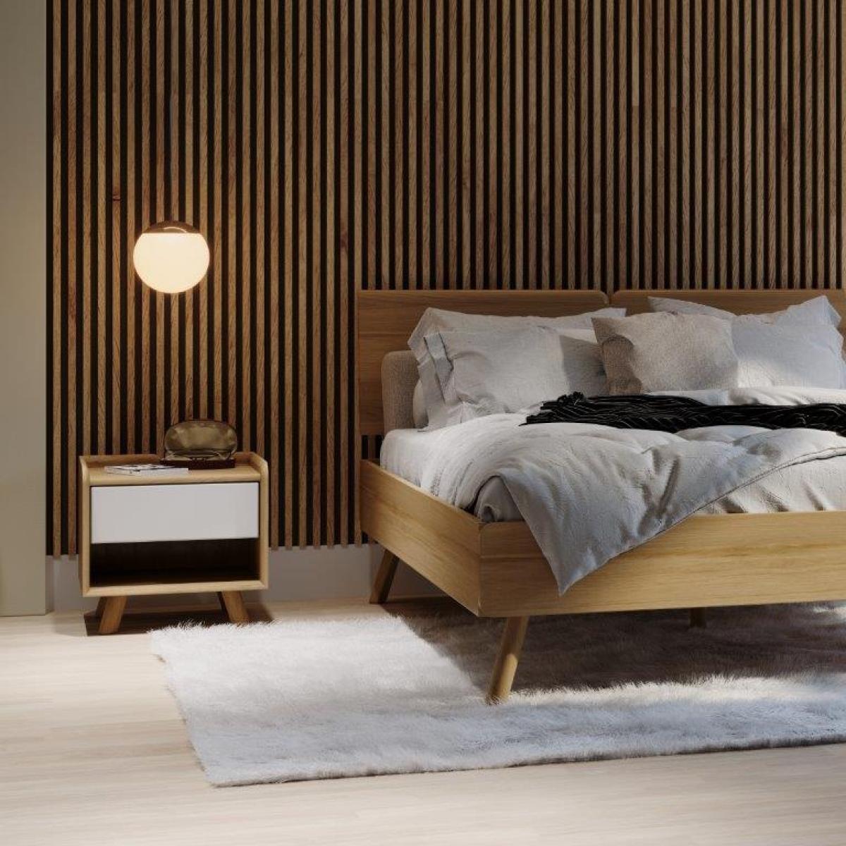 I’m a fan of the Lago bedside cabinet for its clean lines and mix of white and light oak tones, which slot seamlessly into Scandi-inspired, minimalist or Japandi bedrooms. The single drawer keeps clutter hidden while the open shelf is perfect for a charging station or a small stack of bedtime reads. To style, try a slim-profile lamp, a little ceramic pot plant and a simple tray for everyday essentials - this keeps the top neat and balances the proportions of the cabinet.