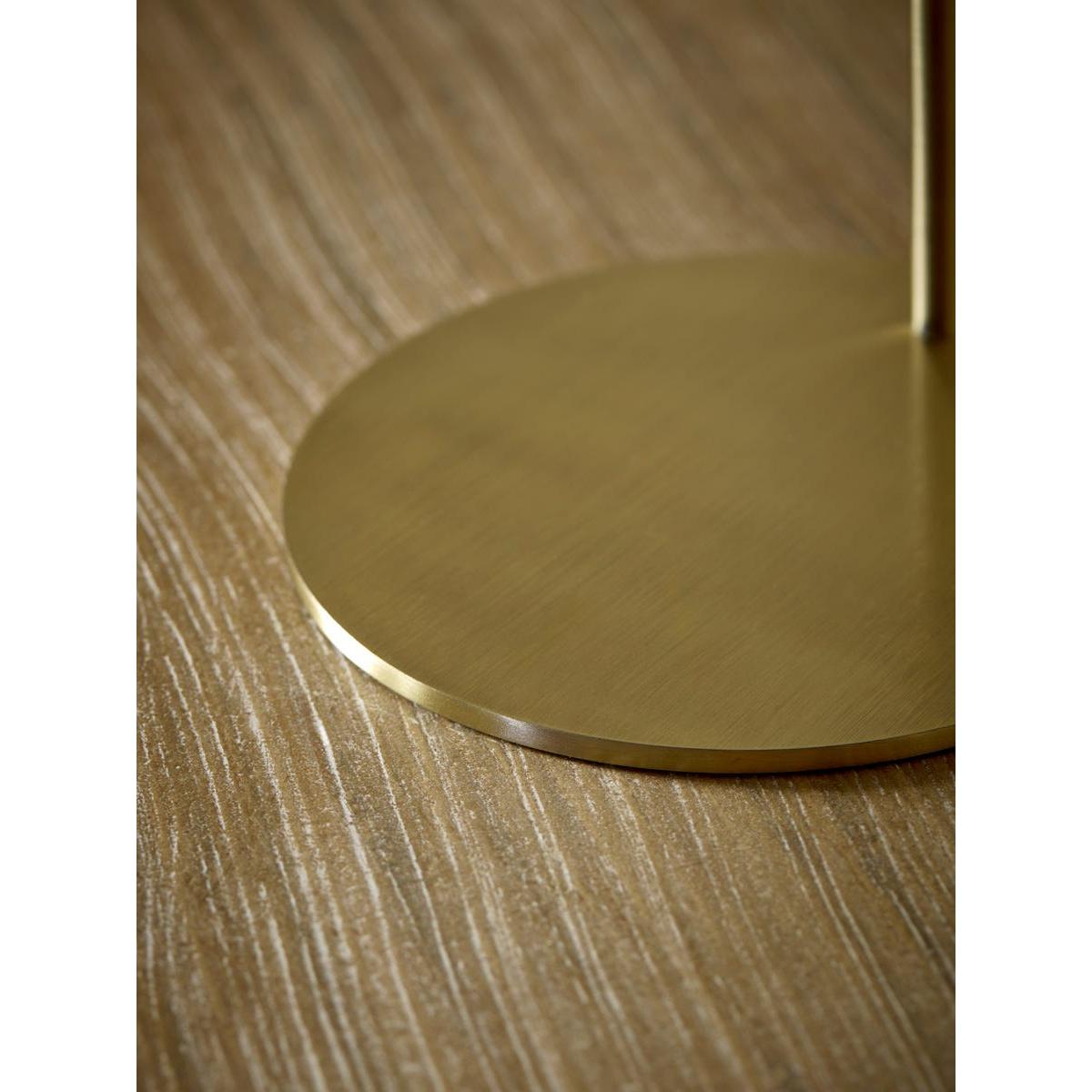 I love this table lamp for its sleek brass finish and modern silhouette, which adds a touch of elegance to both contemporary and vintage-inspired interiors. It works well as a bedside lamp or on a side table in living spaces that benefit from warm, ambient lighting. To style it effectively, consider pairing it with neutral textiles and natural materials for a cohesive look, or use it as a statement piece in a minimalist setting. Practical tips include positioning it where it can provide functional light for reading or relaxing, while its understated design keeps the space feeling uncluttered and sophisticated.