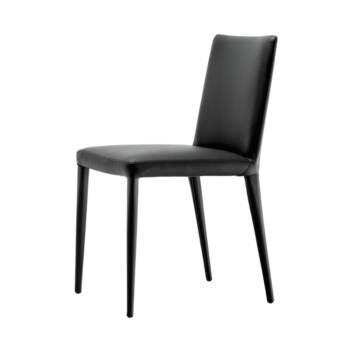 The appeal of the Bella Leather Side Chair comes from its elegant outline, perfectly summarising the archetype of leather chairs. The back, in a special flexible spring "memory" steel, conveys a perfect balance between beauty and comfort. By incorporating flexible harmonic steel in the construction of the chair backs, designers Renzo Fauciglietti and Graziella Bianchi have created a chair of uncompromising quality and comfort. Bella is hand-welded and upholstered in Italy with a smooth, thick leather that is highly durable and treated for stain resistance. A light padding of polyurethane foam in the back and seat adds further comfort. Tapered steel tube legs make Bella a strong but lightweight chair.