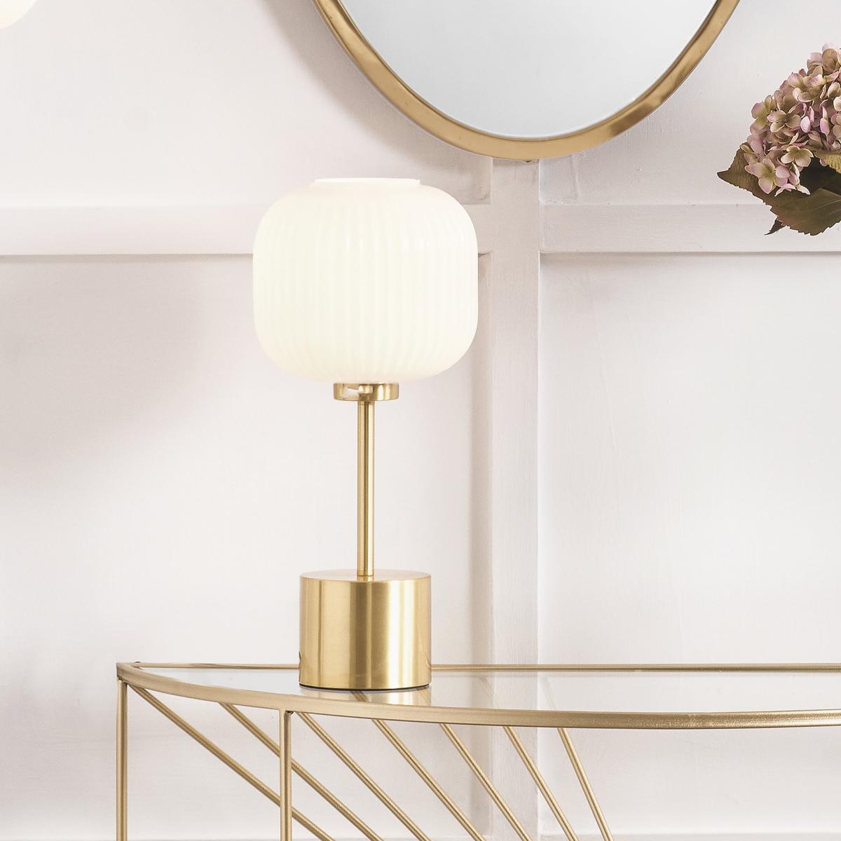 I really like this table lamp for its sleek, contemporary look and the way it combines ribbed glass with a chic gold finish. It works particularly well in modern and minimalist interiors, adding a touch of luxe without overpowering a space. It's versatile enough to sit on a bedside table, sideboard, or desk. For styling tips, consider pairing it with neutral or soft-toned accessories to highlight its gold accents, and place it where the light can create a warm, inviting glow. Its glossy finish and classic shape also make it a good fit for more eclectic spaces, where it can act as a statement piece or a subtle complement.