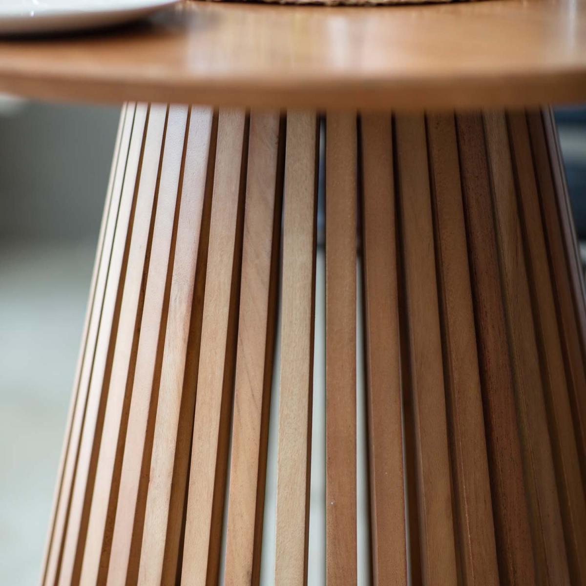 The Bella Round Dining Table will add a stylish contemporary look to a room. The base features gently sloping wood slats which create a stunning design feature and make the table a beautiful focal point in your dining room. Crafted from solid acacia wood in a natural finish to show the grain of the timber, this table is modern and practical.