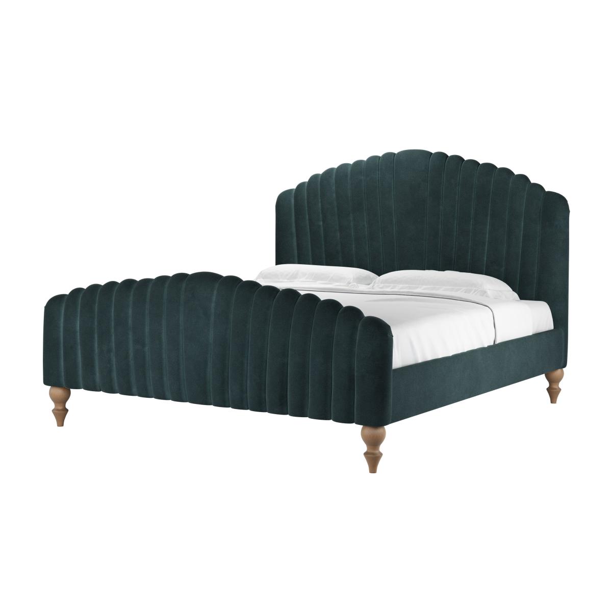 I love this bed for its luxurious velvet finish and elegant shape, making it a real focal point in the room. The deep forest colour adds richness and sophistication, perfect for both contemporary and classic interiors. It works particularly well in darker, moody colour schemes or paired with metallic accents for a luxe feel. For styling tips, consider keeping the bedding minimal in neutral tones to let the bed’s texture and colour shine, or add decorative cushions in contrasting shades for visual interest. Its sizeable scale is great for spacious bedrooms, creating a cosy yet opulent atmosphere, and the neutral wooden legs help ground the look in more traditional or eclectic settings.
