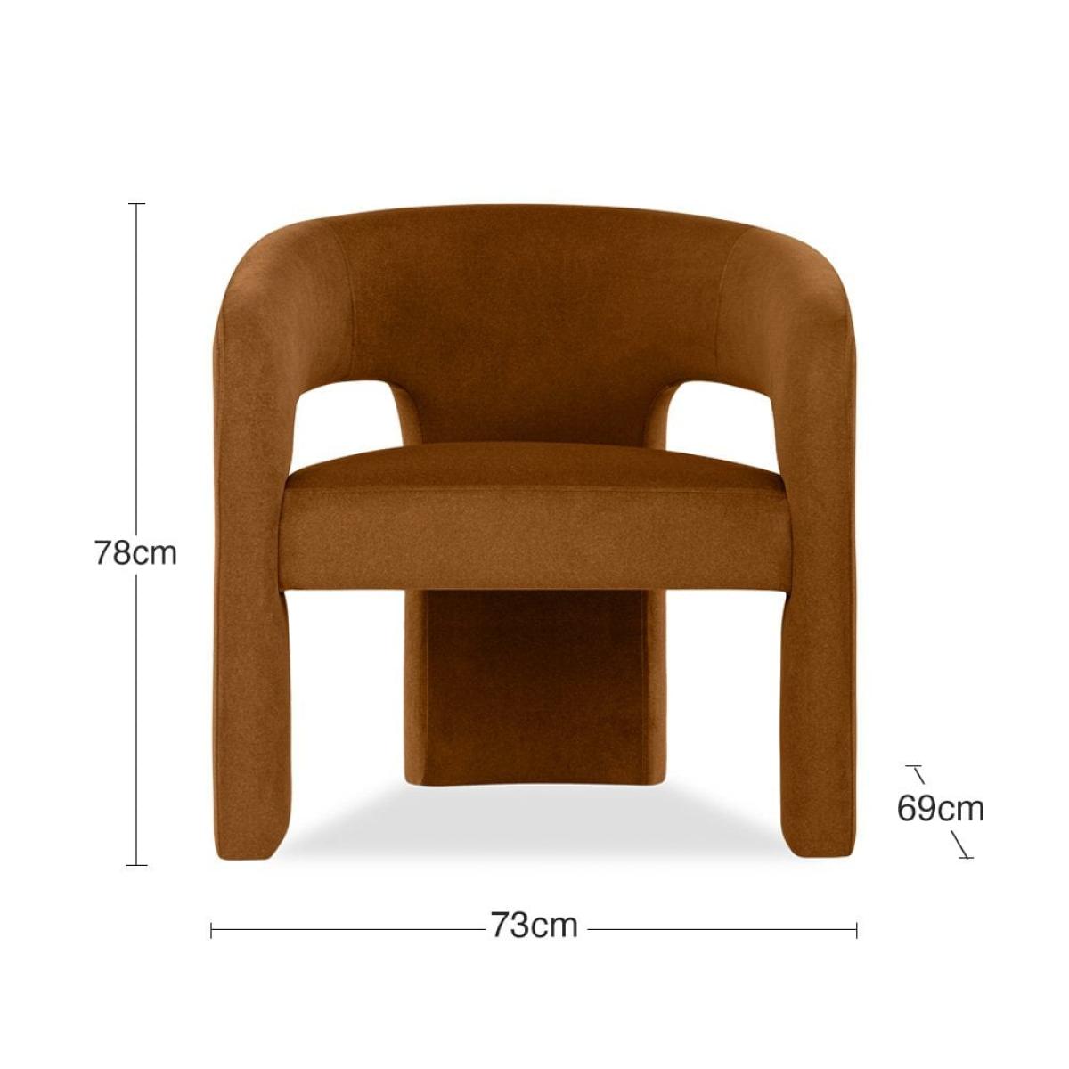I’m a fan of this caramel accent chair for its clean, modern silhouette and the rich, sustainable mohair velvet that feels both durable and tactile. Its warm, toasted hue works equally well in a minimalist scheme as it does alongside mid-century or industrial details, adding just the right amount of depth without overwhelming a space. For styling, pair it with a slim brass or black metal side table and a soft wool throw in a contrasting tone - think deep teal or stone grey. Position it by a window or next to a low console to create a cosy reading nook, and finish with a sculptural plant pot or a simple lamp to keep the look grounded.