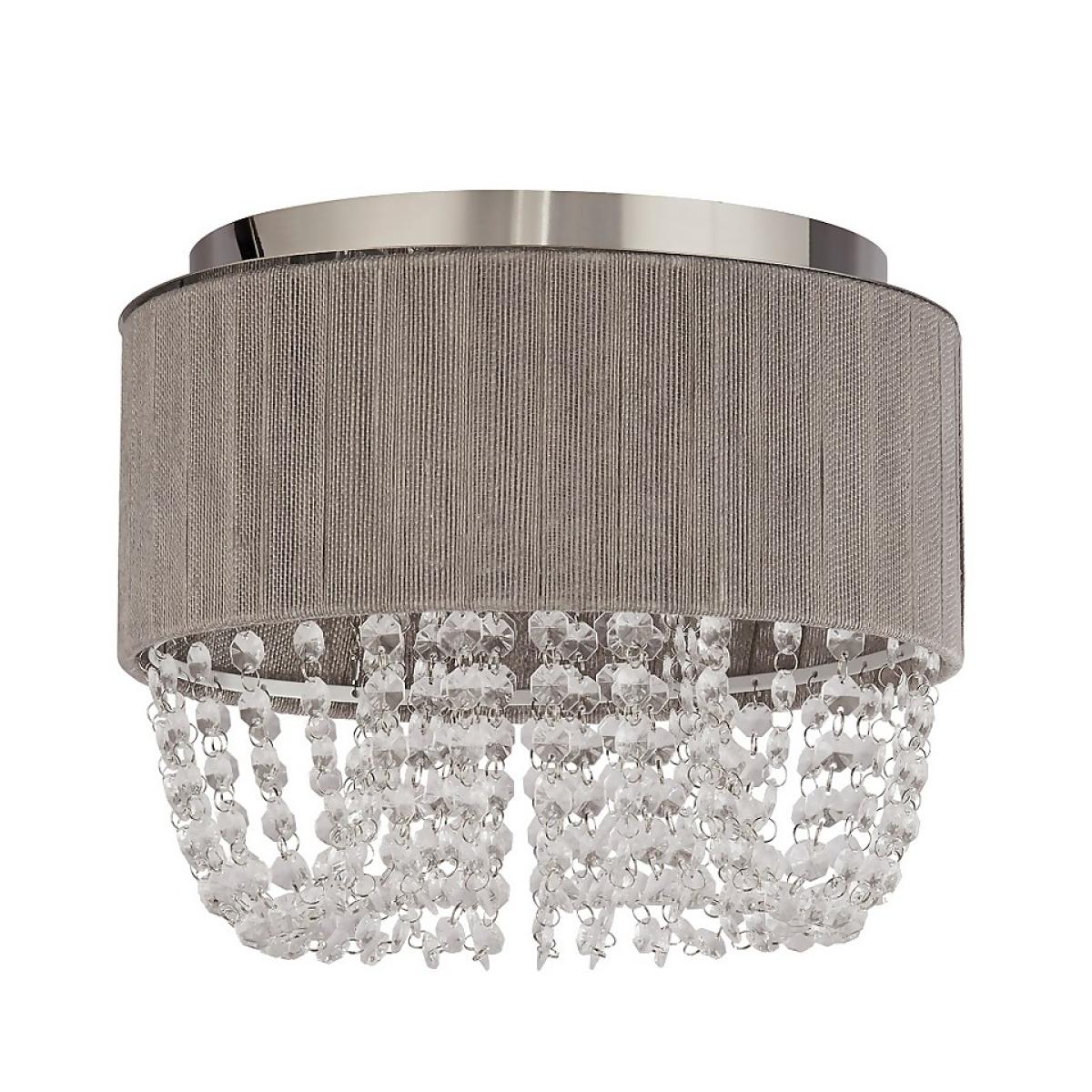 Bring some instant glamour to any room with this 3 light flush ceiling light. With a grey fabric shade and cascading acrylic drops, this light will add a luxurious feel to any living room or bedroom.